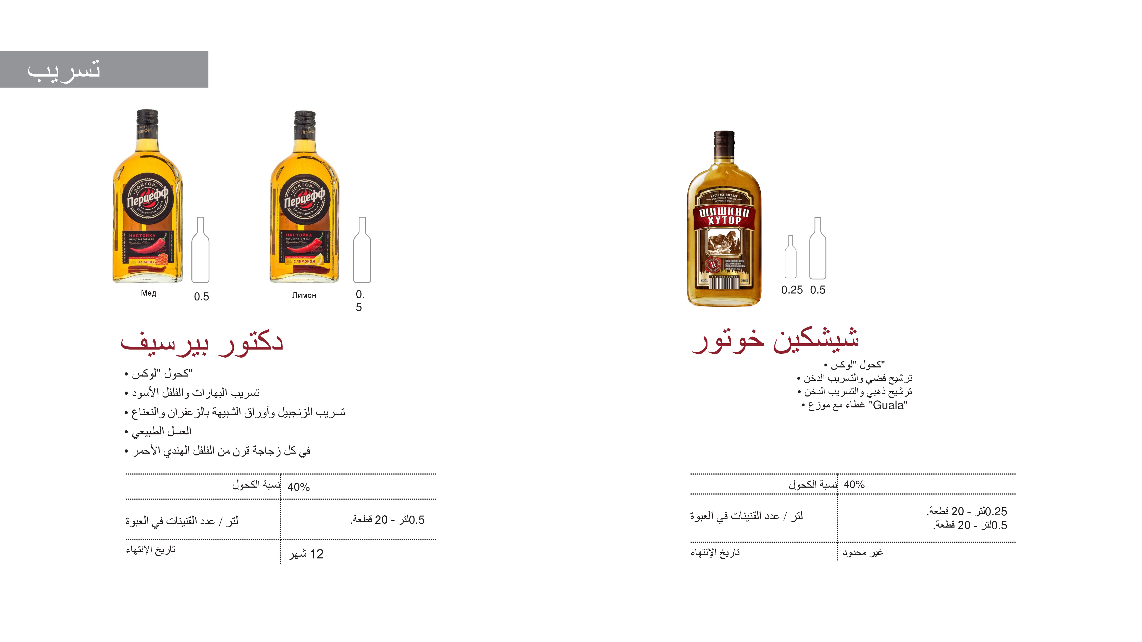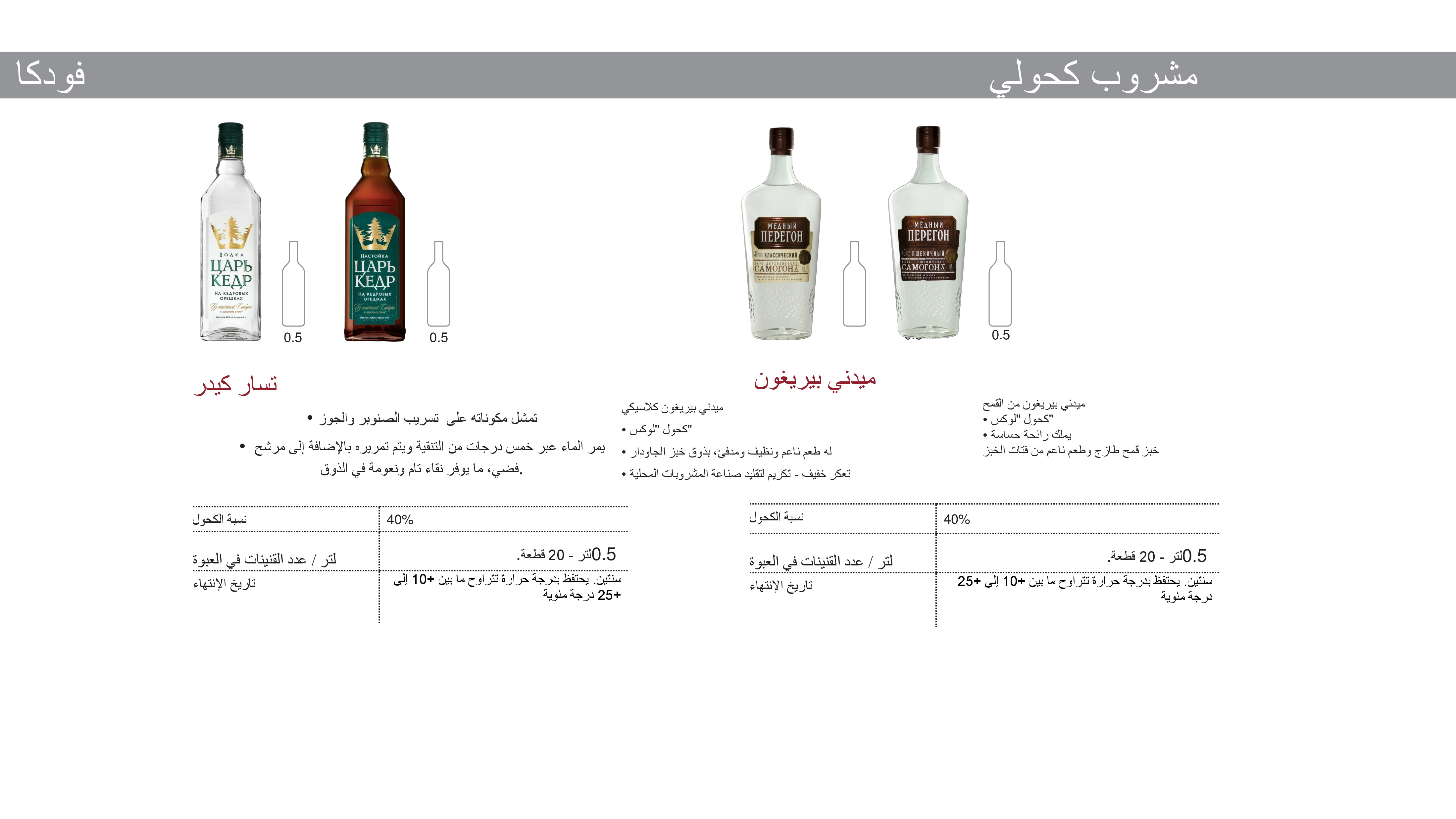 مصنع لإنتاج المشروبات الكحولية - مشروبات فودكا ومشروبات النبيذ. ينتج المصنع العلامات التجارية التالية: "خانسكايا limited edition"، Akdov"، "Graf Ledoff"، "Tundra"، "روسكايا فاليوتا"، ويسكي "Your Choice"، شمبانبا "Lindele". منتجات الشركة موجودة في المحلات التجارية ومحلات التجزئة في جميع مقاطعات روسيا. شبكة "أريش ماي" - هي شبكة تجارية رسمية تقوم ببيع منتجات الشركة.