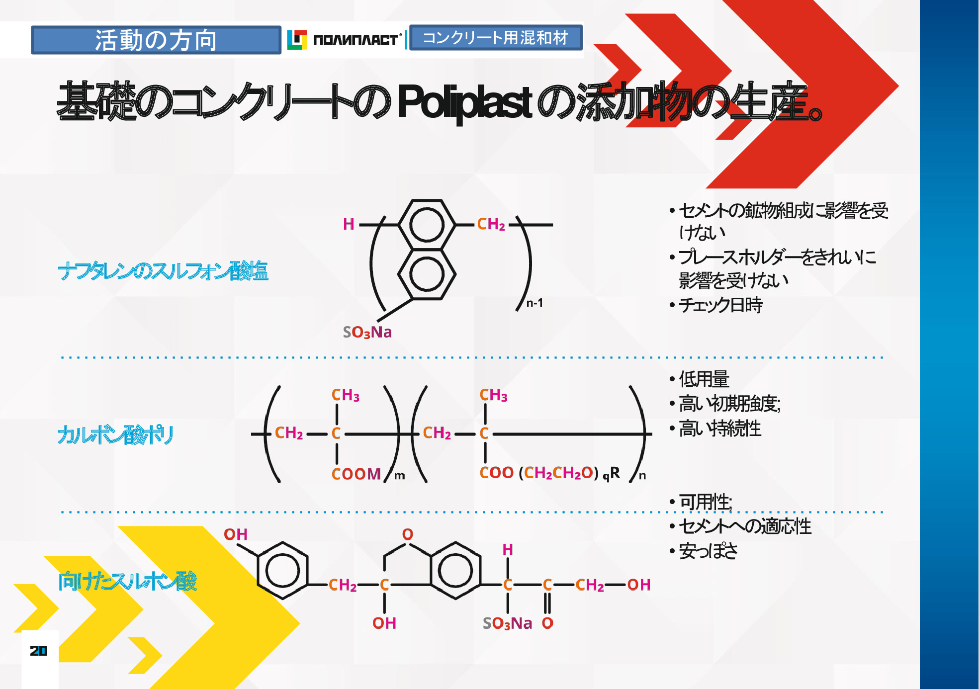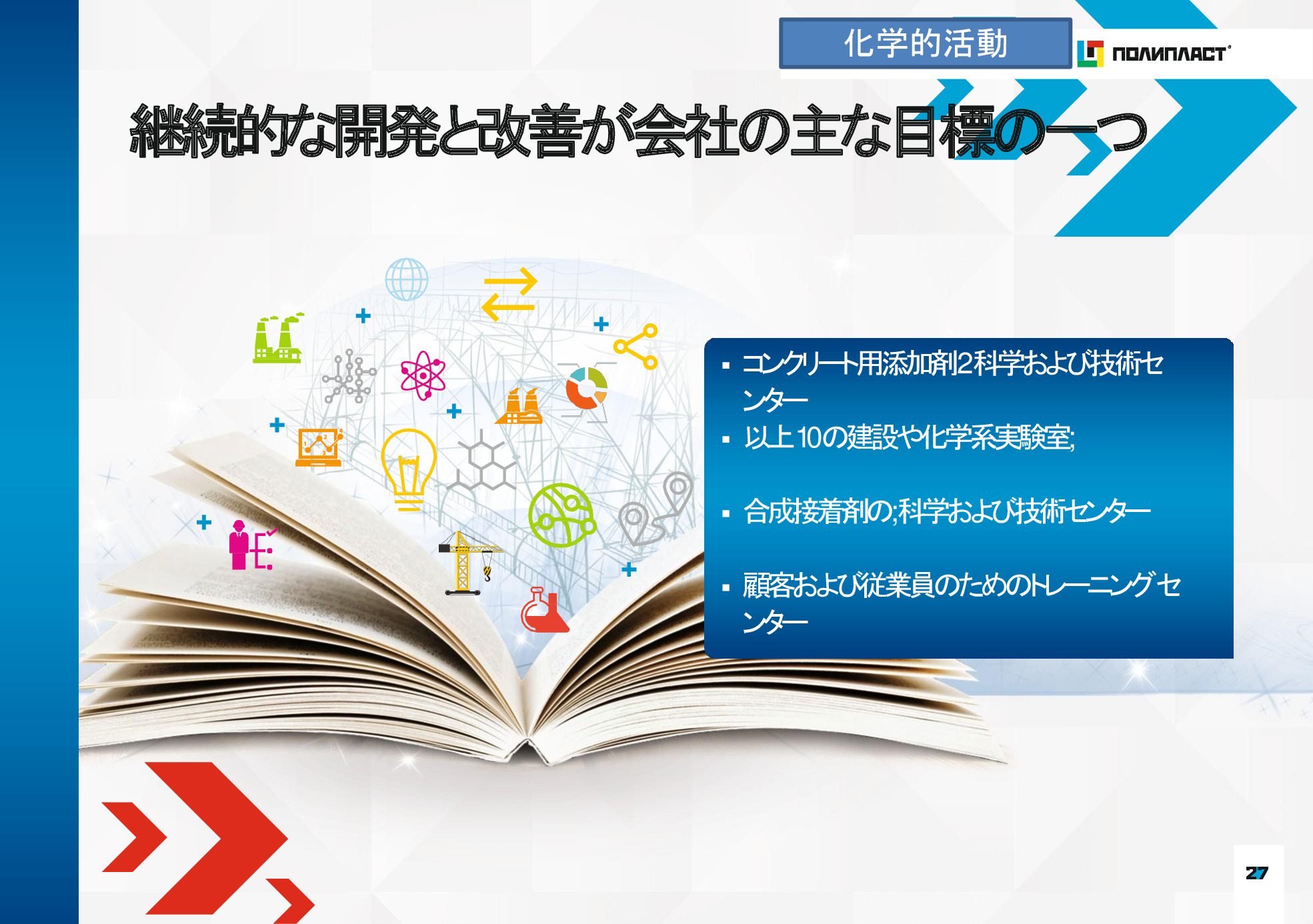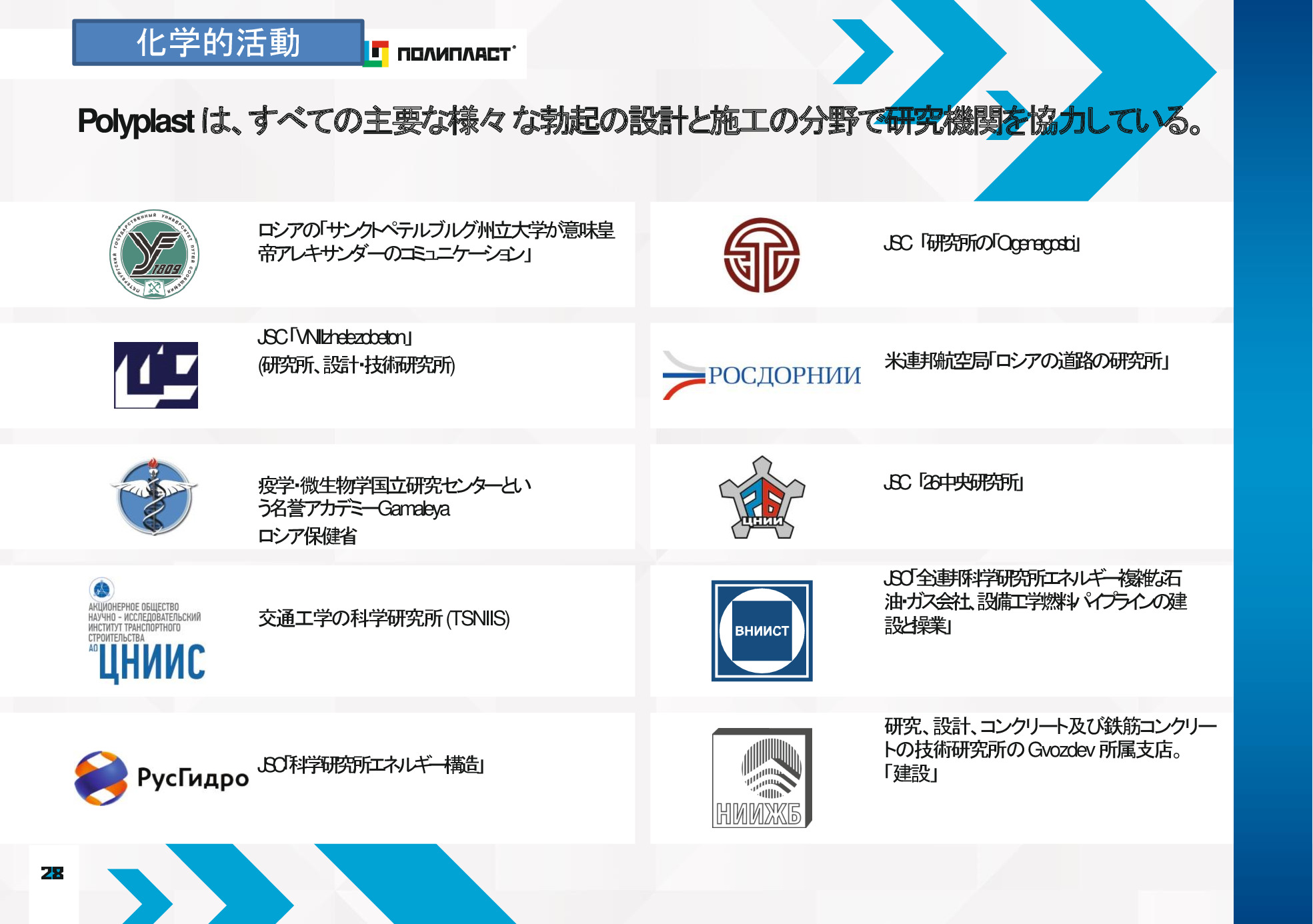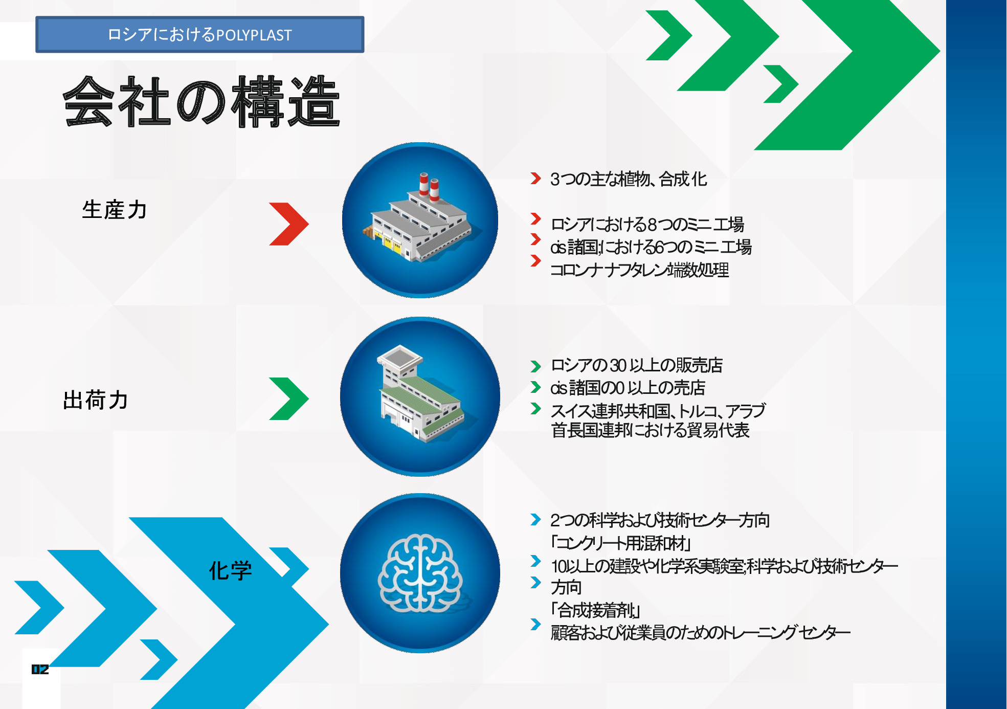 JSC[Poliplast]は、ロシア連邦最大ケミカルホールディングス国のさまざまな地域に位置する、3 つの有機合成工場が正常に動作のひとつである。同社の最新のテクノロジーの備わったモダンな生産と、分岐構造の事務所をロシアおよび CIS 諸国の全ての領域を包含する。これ全体は、見出し全体ロシアの領土カリーニング ラードから北東に建設業界のニーズにお応えした製品群の製品の最短期間でお届けすることができるだけでなく、CIS 諸国、フィンランド、ポーランド、オランダ、トルコ、イスラエル、アラブ首長国連邦、インド、ブラジル、南アフリカ共和国、いくつかの他の国にも輸出する。
