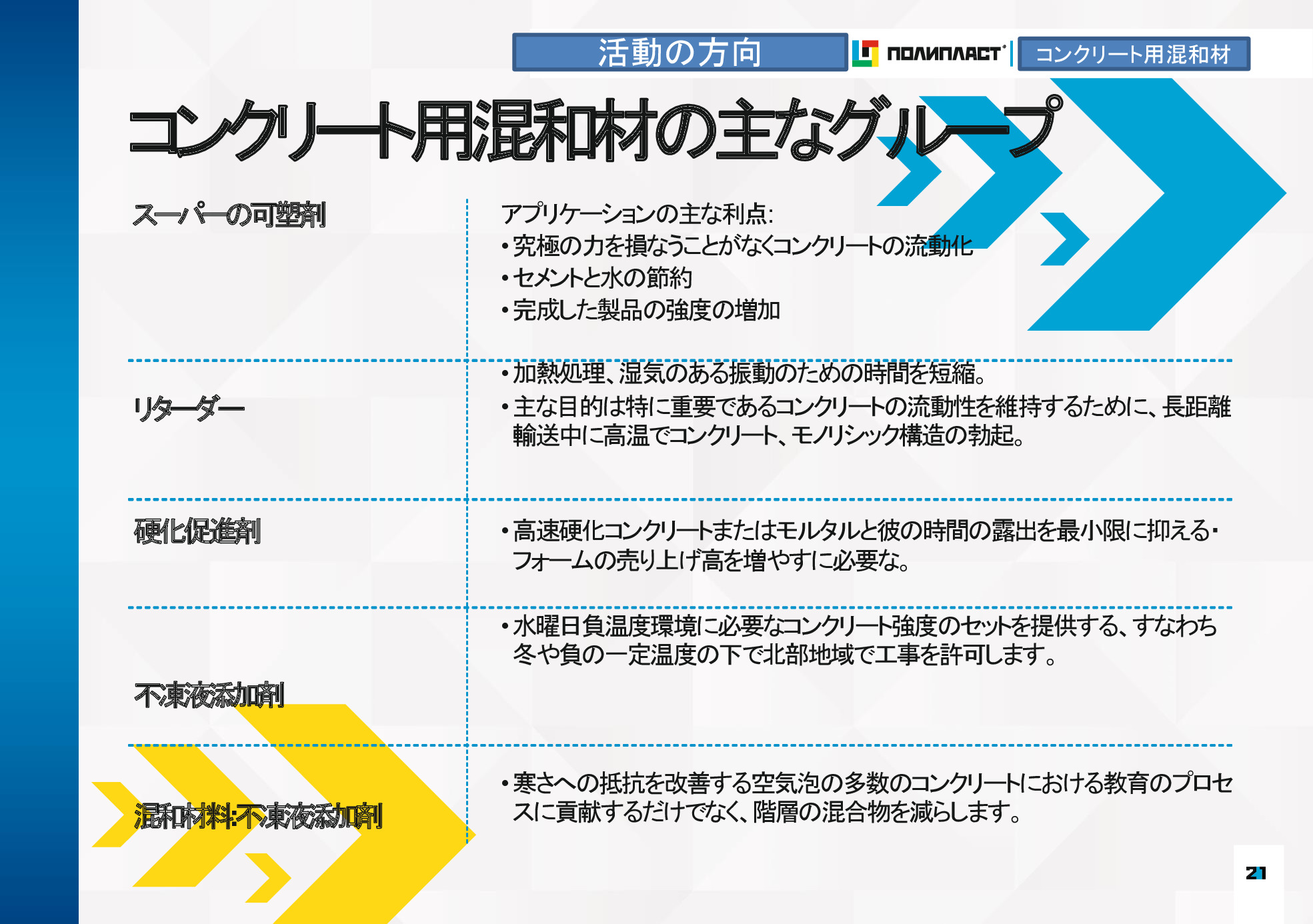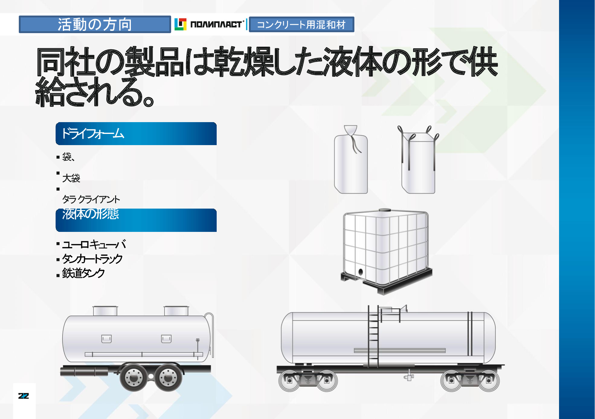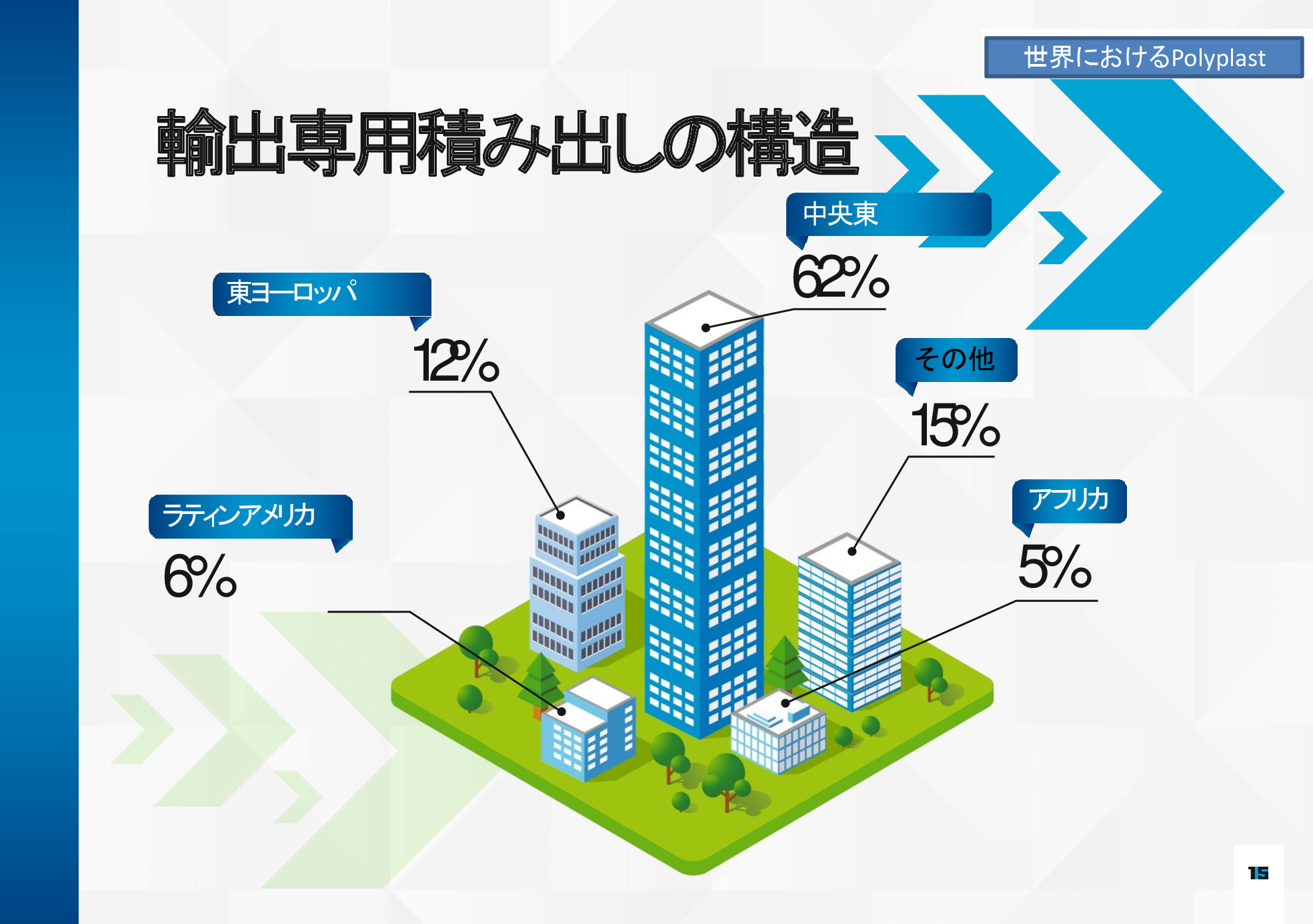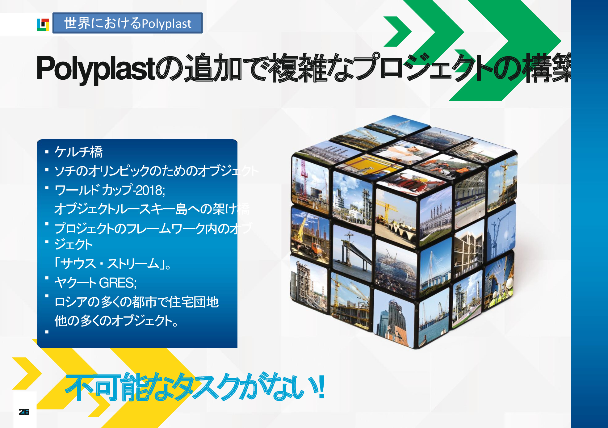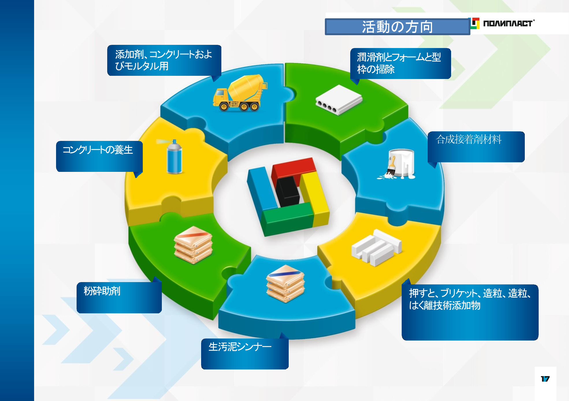 JSC[Poliplast]は、ロシア連邦最大ケミカルホールディングス国のさまざまな地域に位置する、3 つの有機合成工場が正常に動作のひとつである。同社の最新のテクノロジーの備わったモダンな生産と、分岐構造の事務所をロシアおよび CIS 諸国の全ての領域を包含する。これ全体は、見出し全体ロシアの領土カリーニング ラードから北東に建設業界のニーズにお応えした製品群の製品の最短期間でお届けすることができるだけでなく、CIS 諸国、フィンランド、ポーランド、オランダ、トルコ、イスラエル、アラブ首長国連邦、インド、ブラジル、南アフリカ共和国、いくつかの他の国にも輸出する。