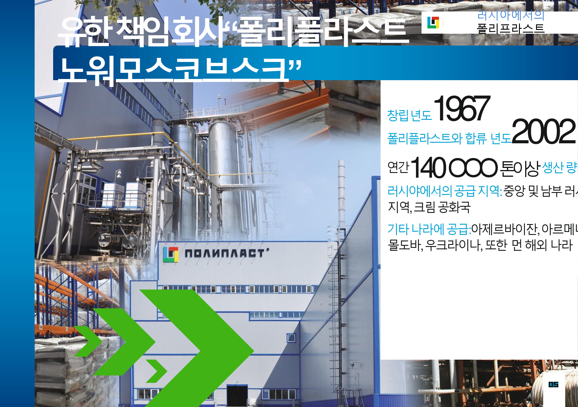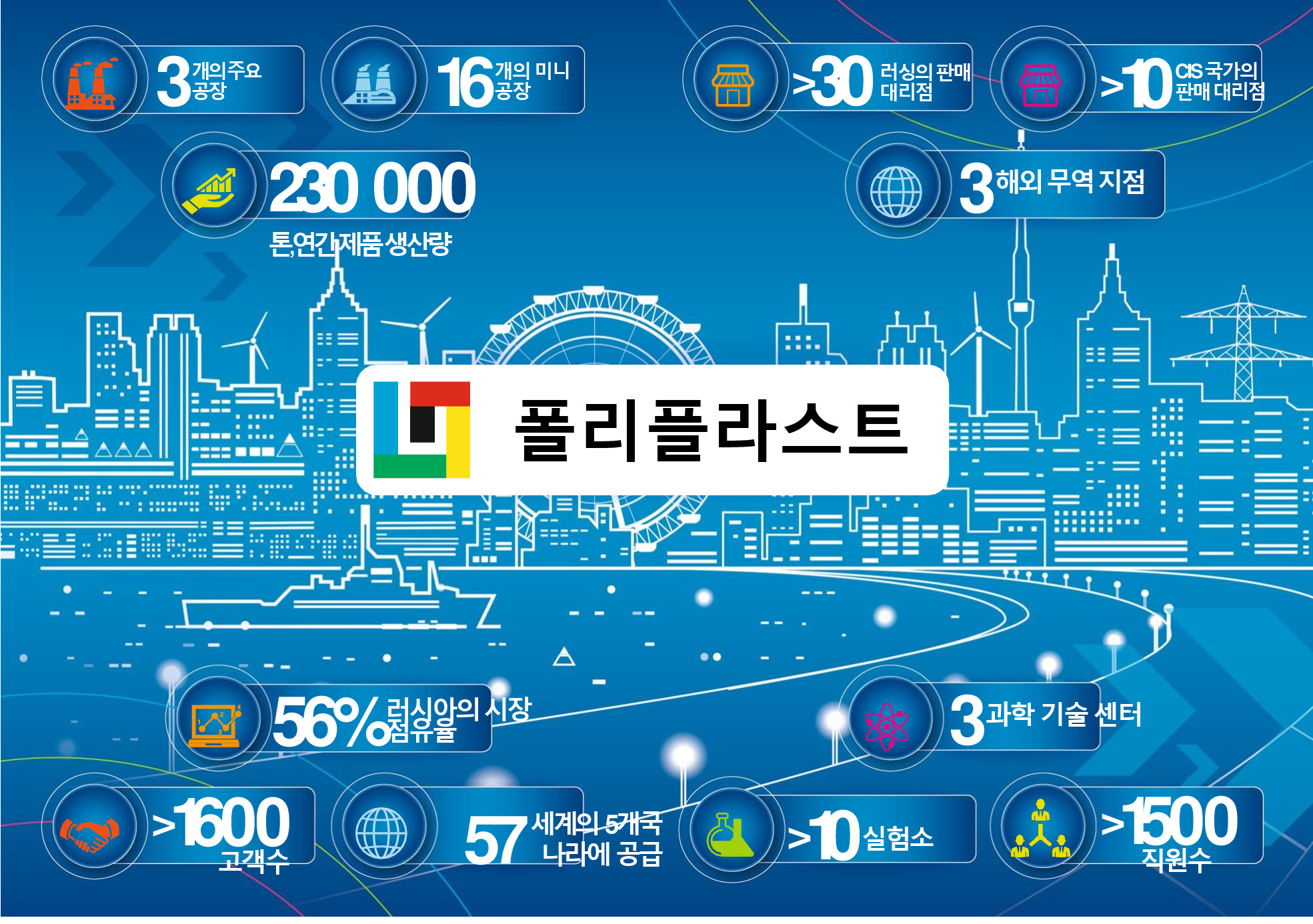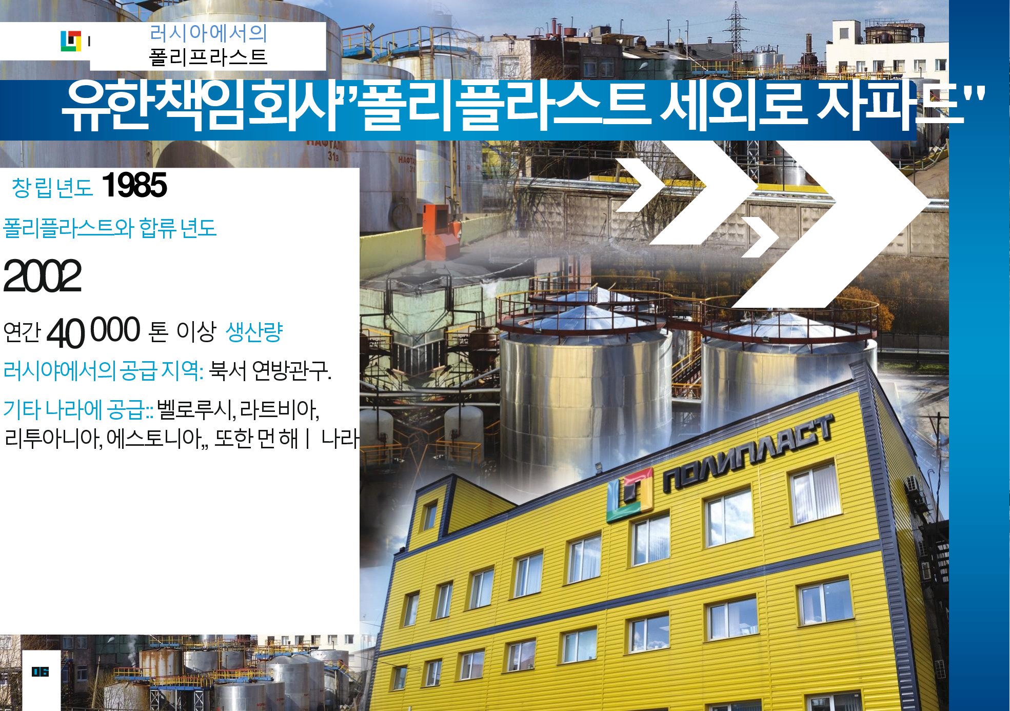 주식회사 «게까 뽈리쁠라스트»는 로씨야련방의 거대한 화학홀딩들중의 하나이며 회사산하에서는 나라의 여러 지역들에 위치하고있는 3개의 유기합성공장들이 성과적으로 가동하고있습니다. 회사는 새로운 기술설비들로 장비된 현대적인 생산수단들과 로씨야련방의 모든 지역과 국경가까운 나라들을 포괄하는 분포된 자기의 대표부들을 가지고있습니다. 하여 깔리닌그라드로부터 을라지워스또크까지의 로씨야의 모든 령토에서, 지어는 독립국가협동체나라들, 핀란드, 뽈스까, 네데를란드, 뛰르끼예, 이스라엘, 아랍추장국련방, 인도, 브라질, 남아프리카공화국 등 여러 나라들에 건설업의 요구를 만족시키면서 생산되는 제품들의 상품목록에서 임의의 상품을 빠른 기간에 손님에게 가닿도록 합니다.