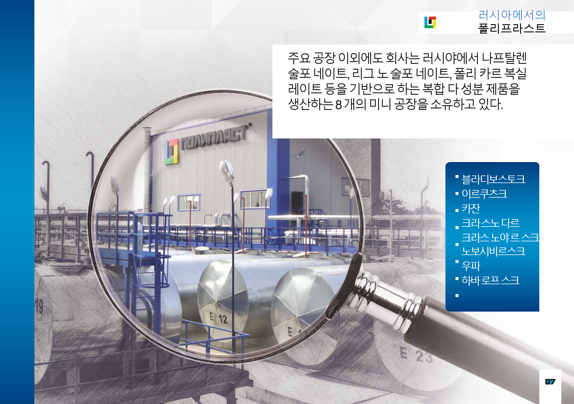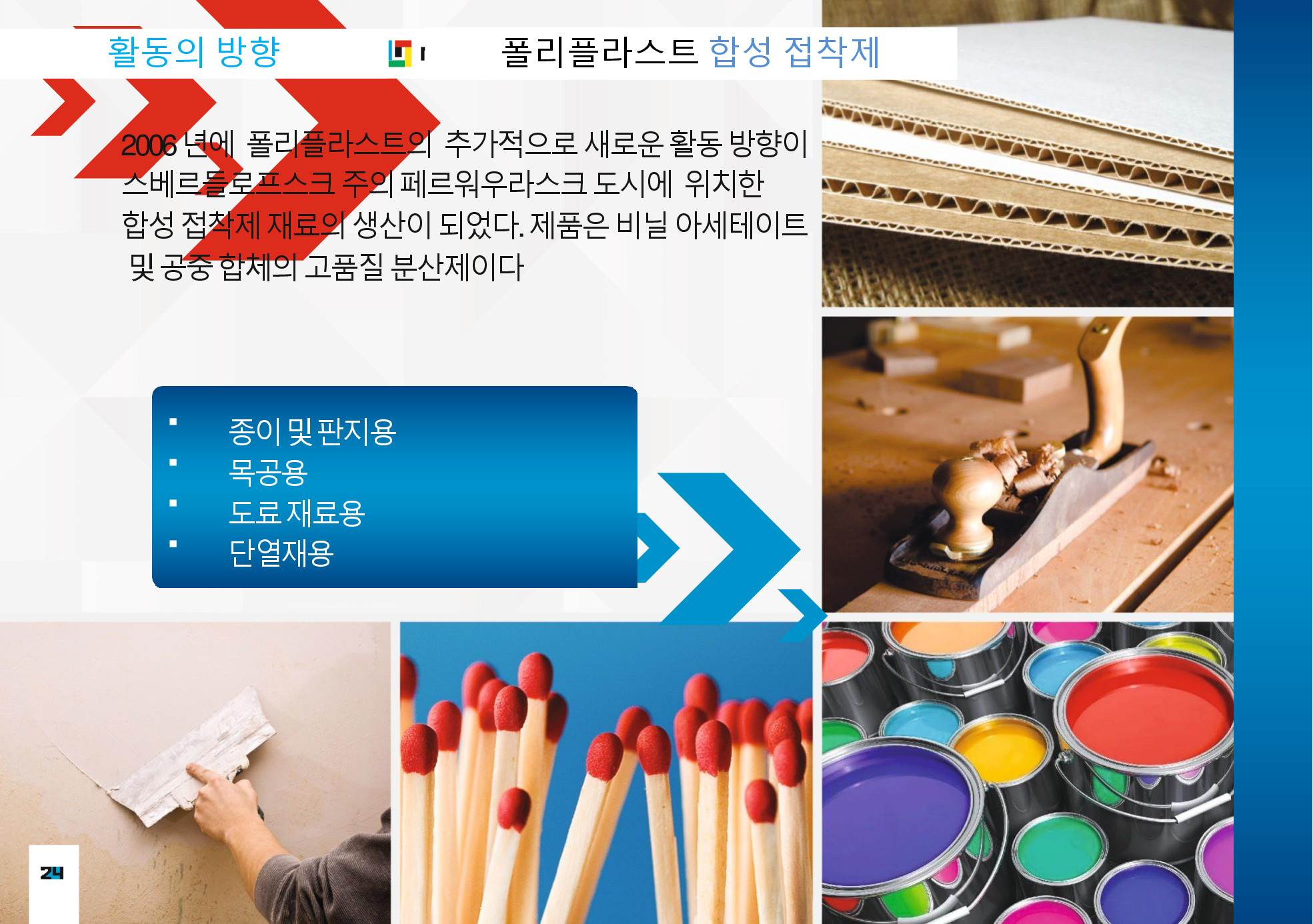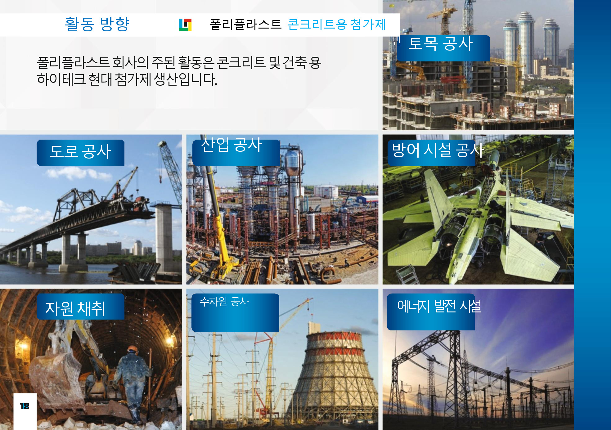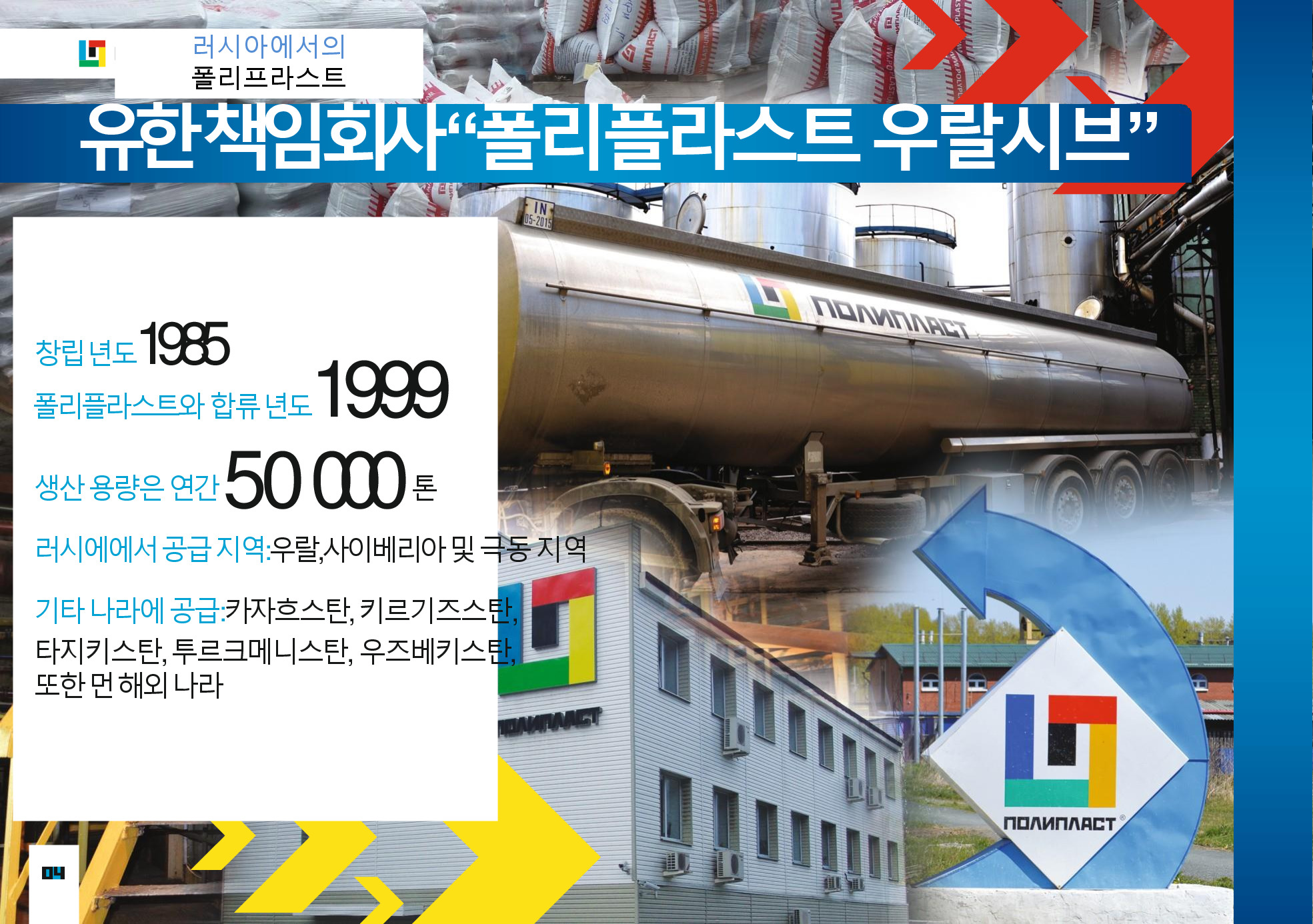 주식회사 «게까 뽈리쁠라스트»는 로씨야련방의 거대한 화학홀딩들중의 하나이며 회사산하에서는 나라의 여러 지역들에 위치하고있는 3개의 유기합성공장들이 성과적으로 가동하고있습니다. 회사는 새로운 기술설비들로 장비된 현대적인 생산수단들과 로씨야련방의 모든 지역과 국경가까운 나라들을 포괄하는 분포된 자기의 대표부들을 가지고있습니다. 하여 깔리닌그라드로부터 을라지워스또크까지의 로씨야의 모든 령토에서, 지어는 독립국가협동체나라들, 핀란드, 뽈스까, 네데를란드, 뛰르끼예, 이스라엘, 아랍추장국련방, 인도, 브라질, 남아프리카공화국 등 여러 나라들에 건설업의 요구를 만족시키면서 생산되는 제품들의 상품목록에서 임의의 상품을 빠른 기간에 손님에게 가닿도록 합니다.