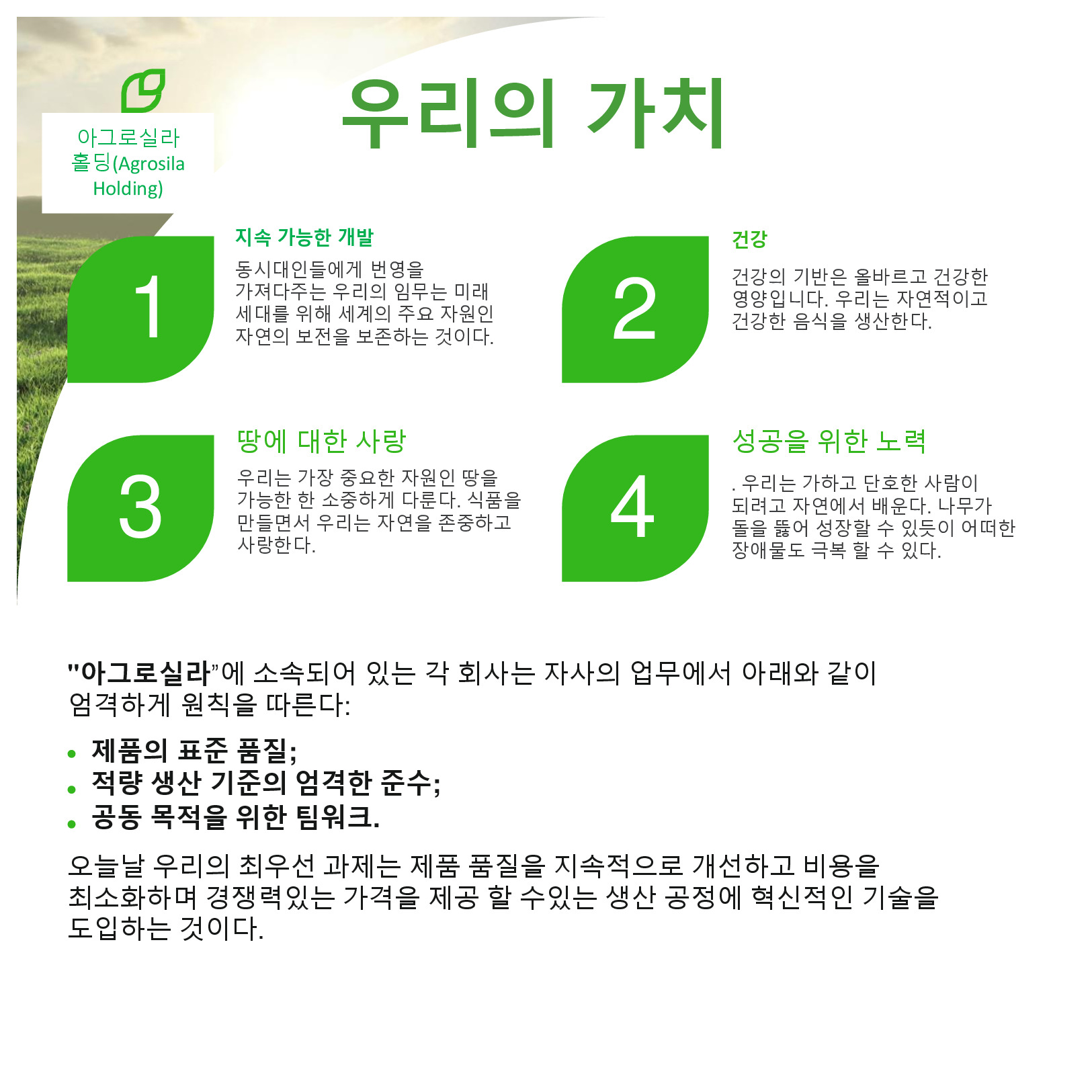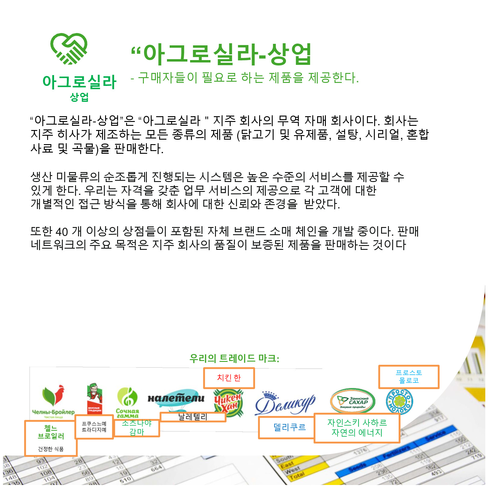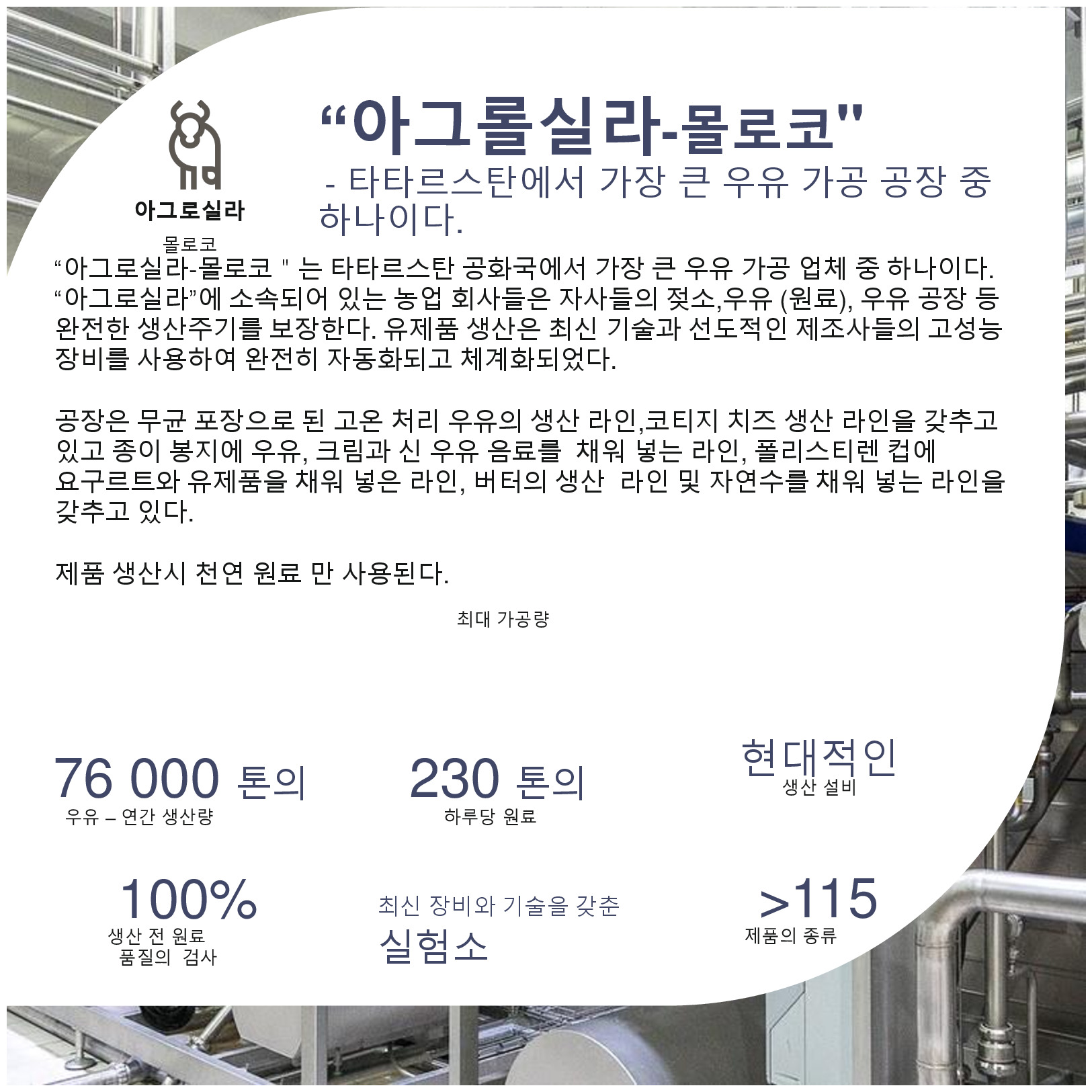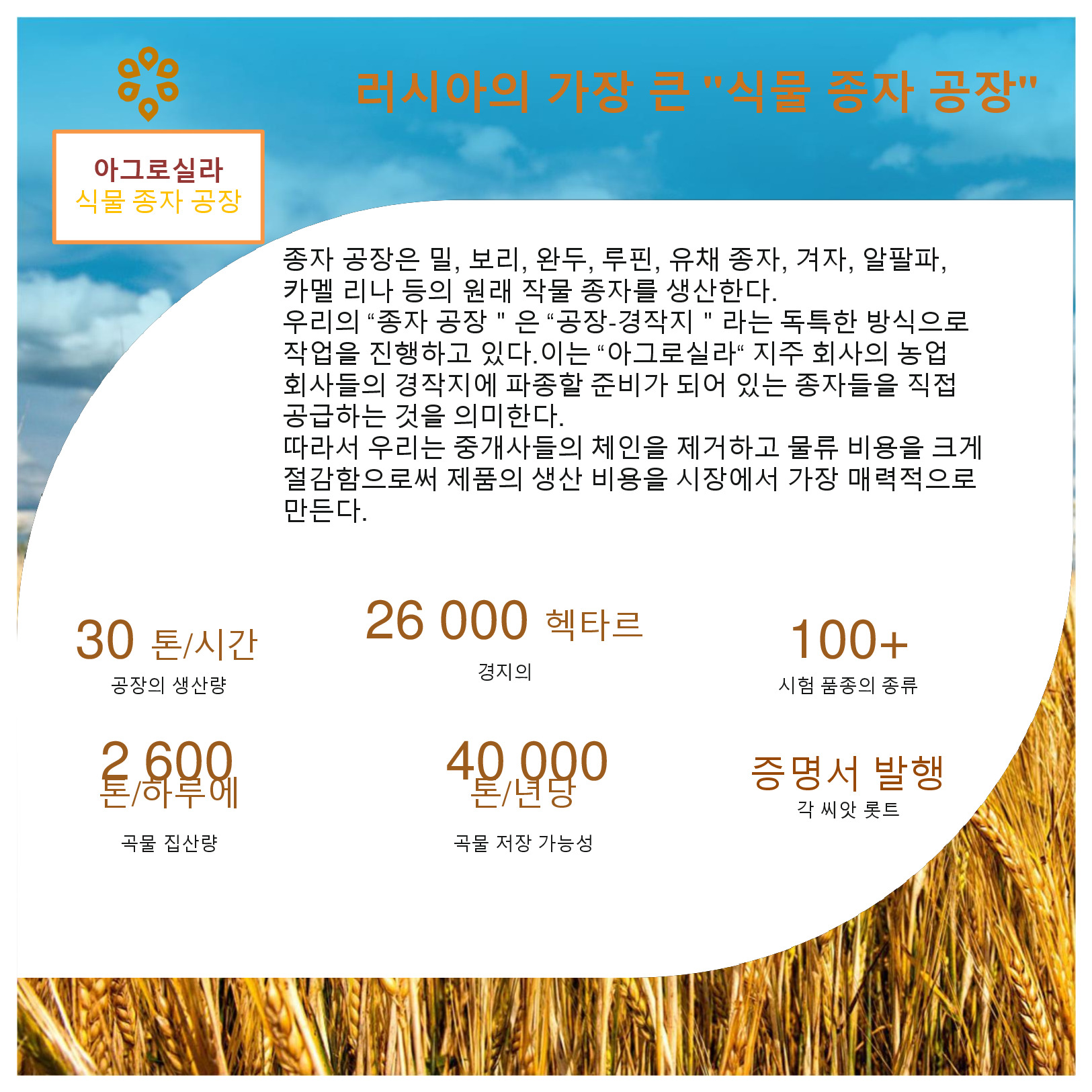 《아그로씰라》는 로씨야의 가장 큰 농업주주회사들중의 하나로서 볼가강류역지역에서 주도적인 농업생산업체입니다. 이 수직통합형주주회사는 알곡 및 기술작물의 재배와 인수, 보관, 가공, 축산과 가금제품생산, 사탕생산, 그리고 생산된 제품의 실현과 농경기술수단수리봉사를 진행하는 기업체들을 망라하고있습니다. 이 어미회사에는 따따르스딴공화국의 령내에 위치한 24개의 농경기업체들이 속합니다. 이 기업체들은 개개의 자기 활동분야에서 주도적위치를 차지하고있습니다. 따따르스딴공화국의 뚜까옙스크구역, 아즈나까옙스크구역, 자인스크구역, 악따늬슈구역, 니쥬네깜스크구역, 무슬류몹스크구역에 있는 《아그로씰라》주주회사의 토지면적은 32만4천헥타르이상에 달하고있습니다. 오늘 이 농업주주회사는 로씨야의 최대토지소유자들중의 하나입니다. 회사의 전망계획은 로씨야의 10대 최대농업생산자에 들어서는것입니다.