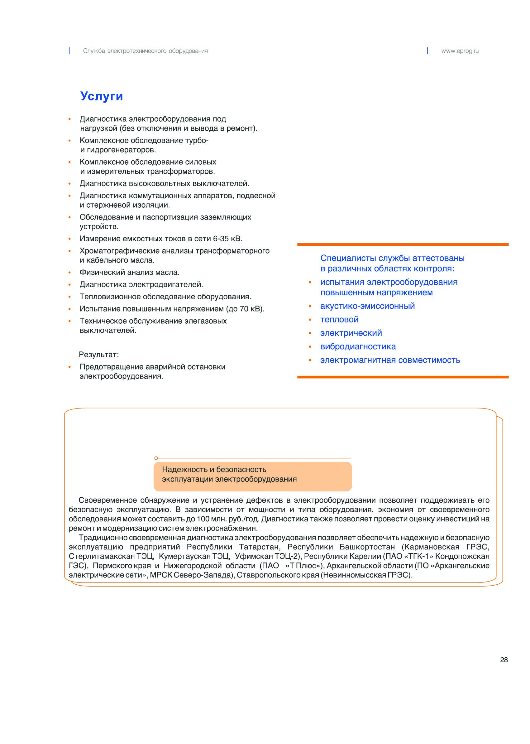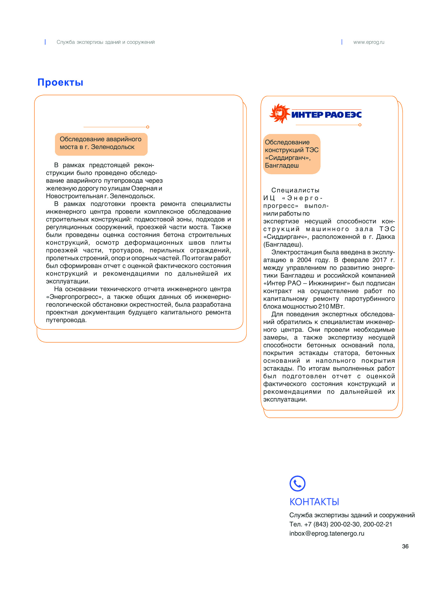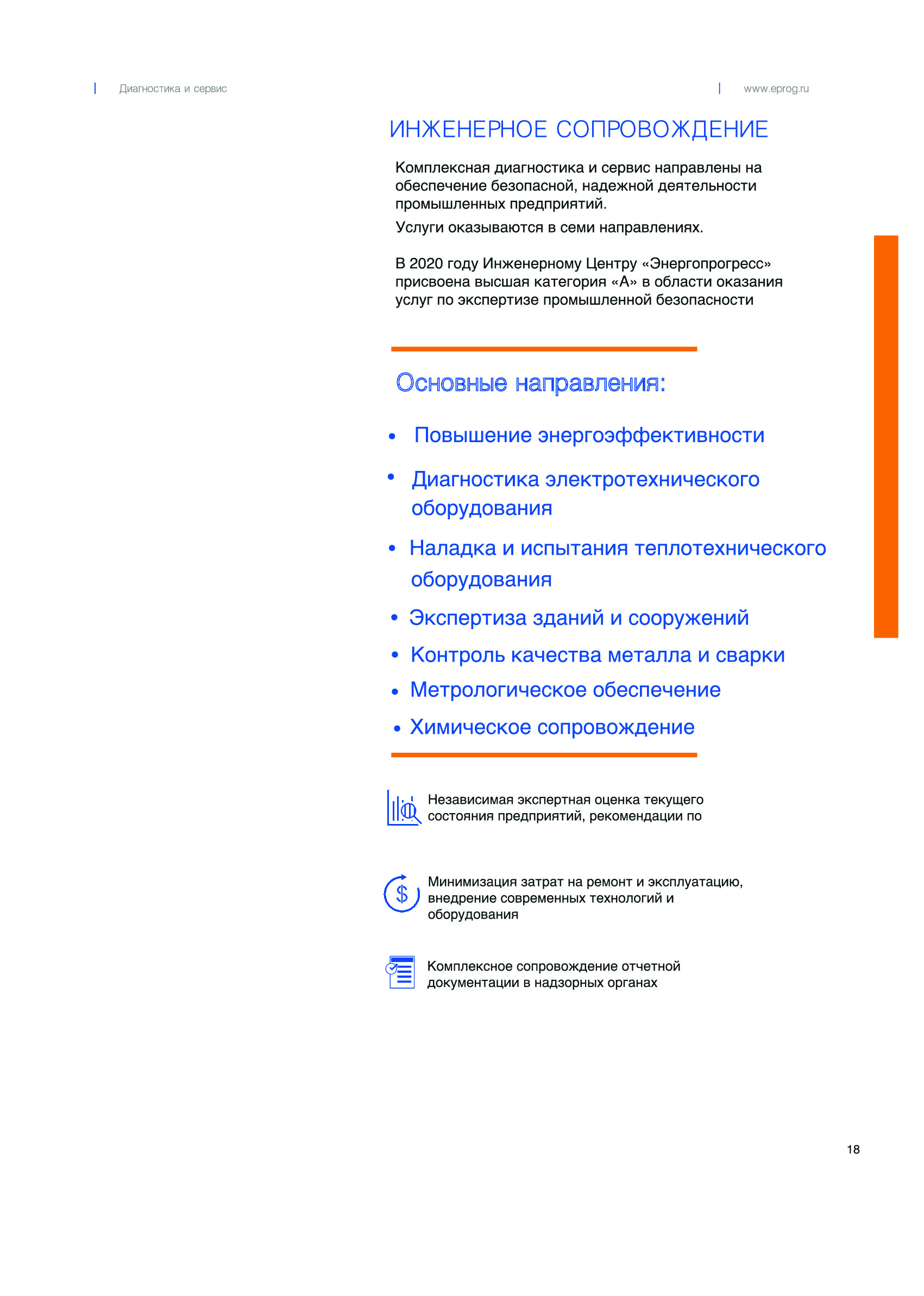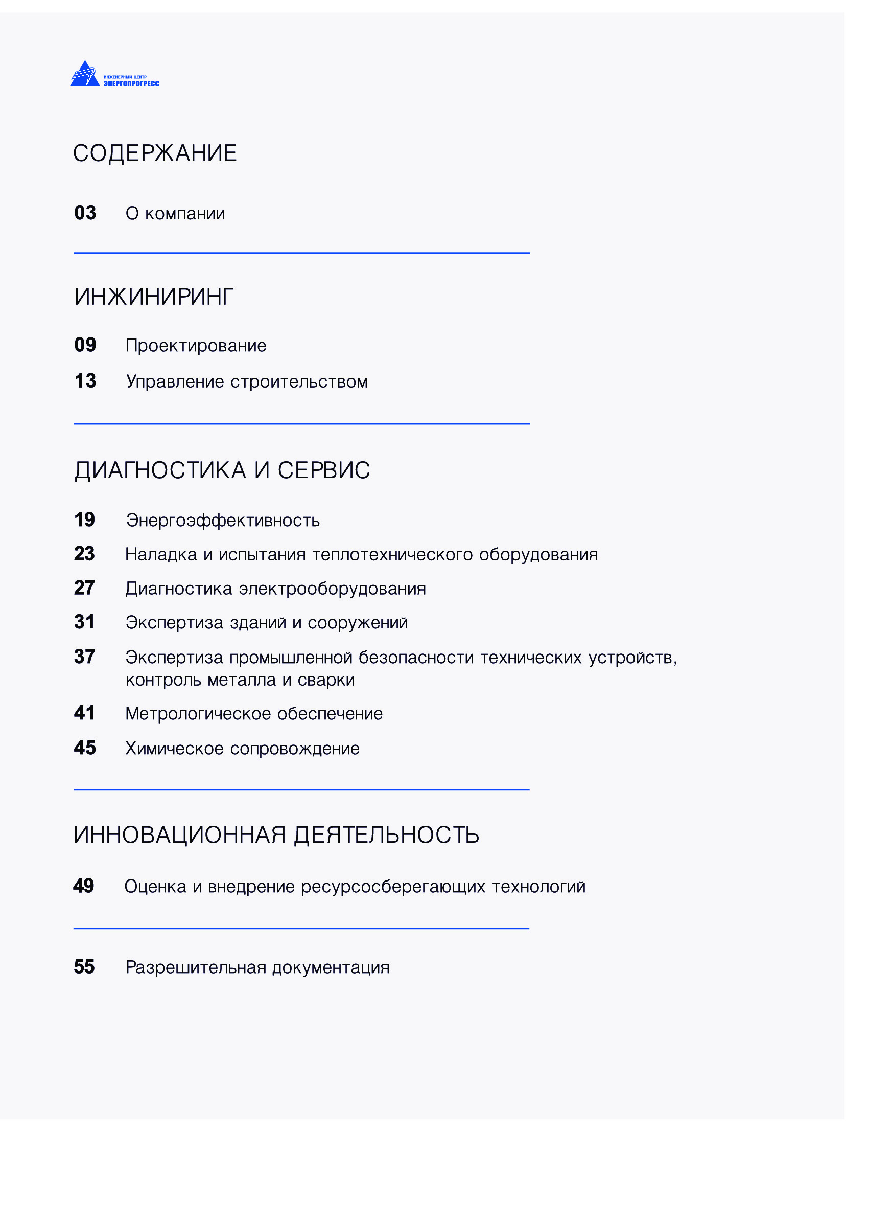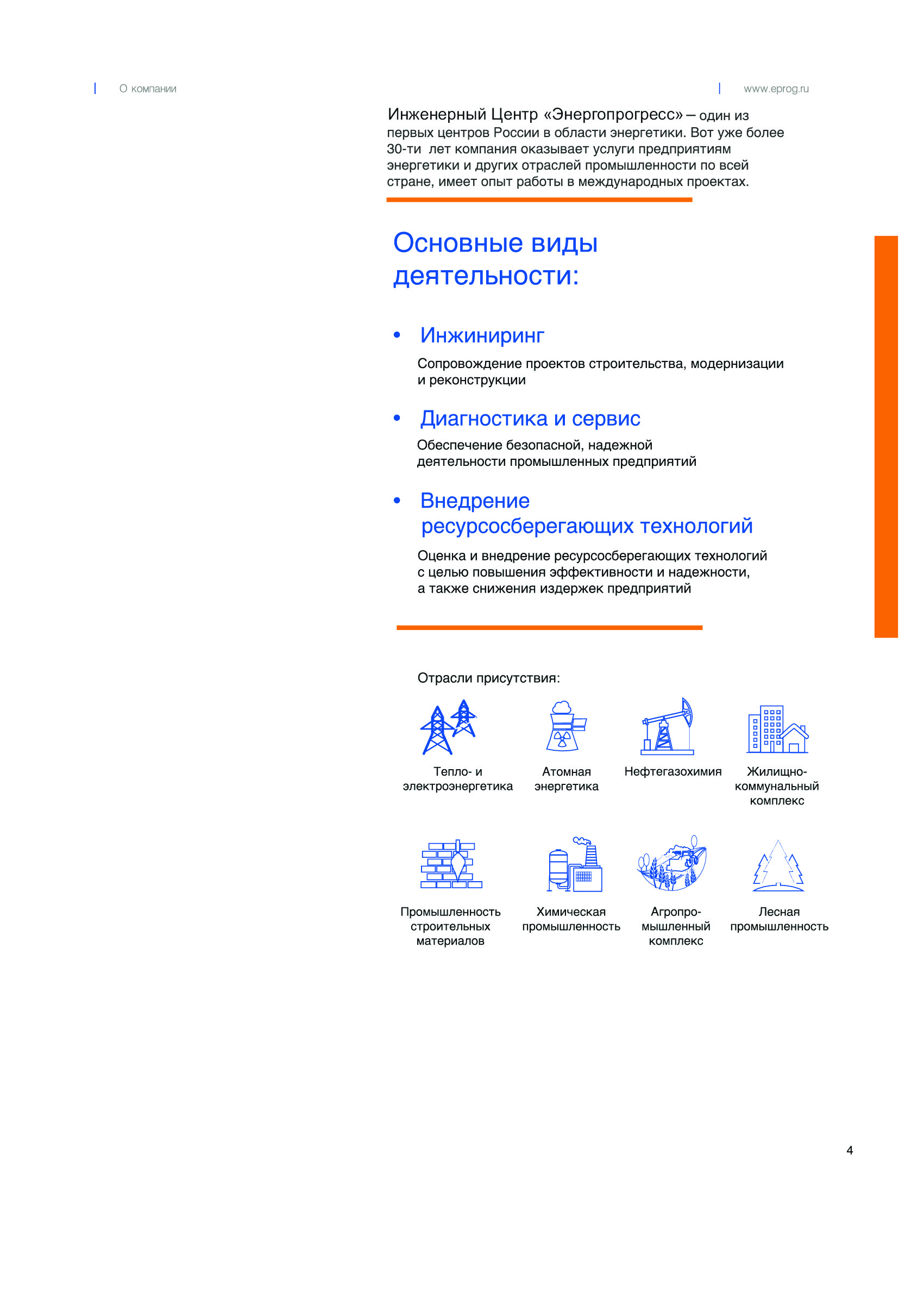 ООО Инженерный центр «Энергопрогресс» 32 года на рынке инженерных услуг в сфере топливно-энергетического комплекса. - Экспертиза промышленной безопасности; - Аудит, комплексная диагностика, и оценка надежности и энергоэффективности энергетического оборудования и систем энергообеспечения; - Предпроектное обследование зданий, сооружений и линий электропередач; - Проектирование объектов, тепло-, электро-, газоснабжения; - Сопровождение строительства.