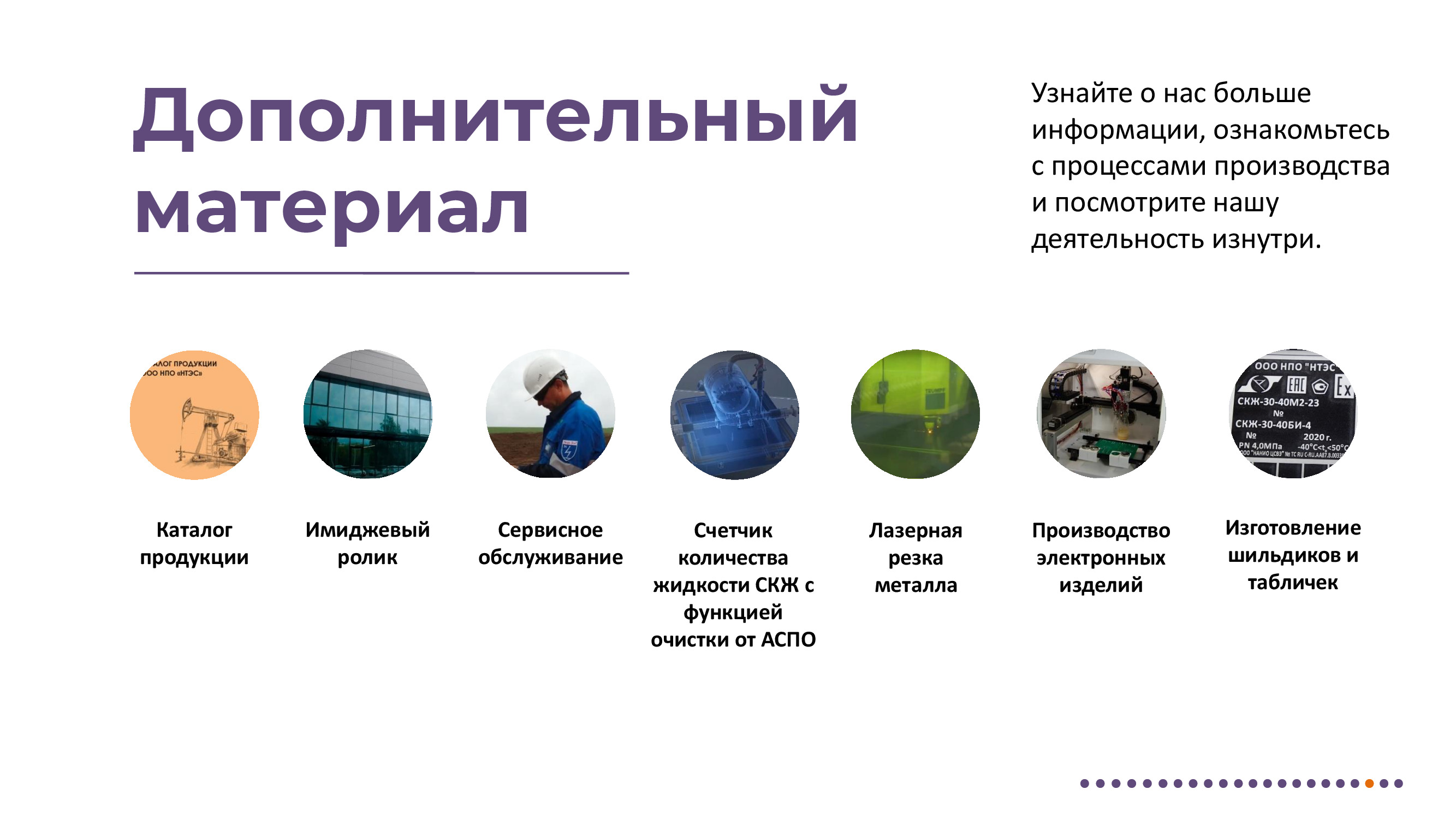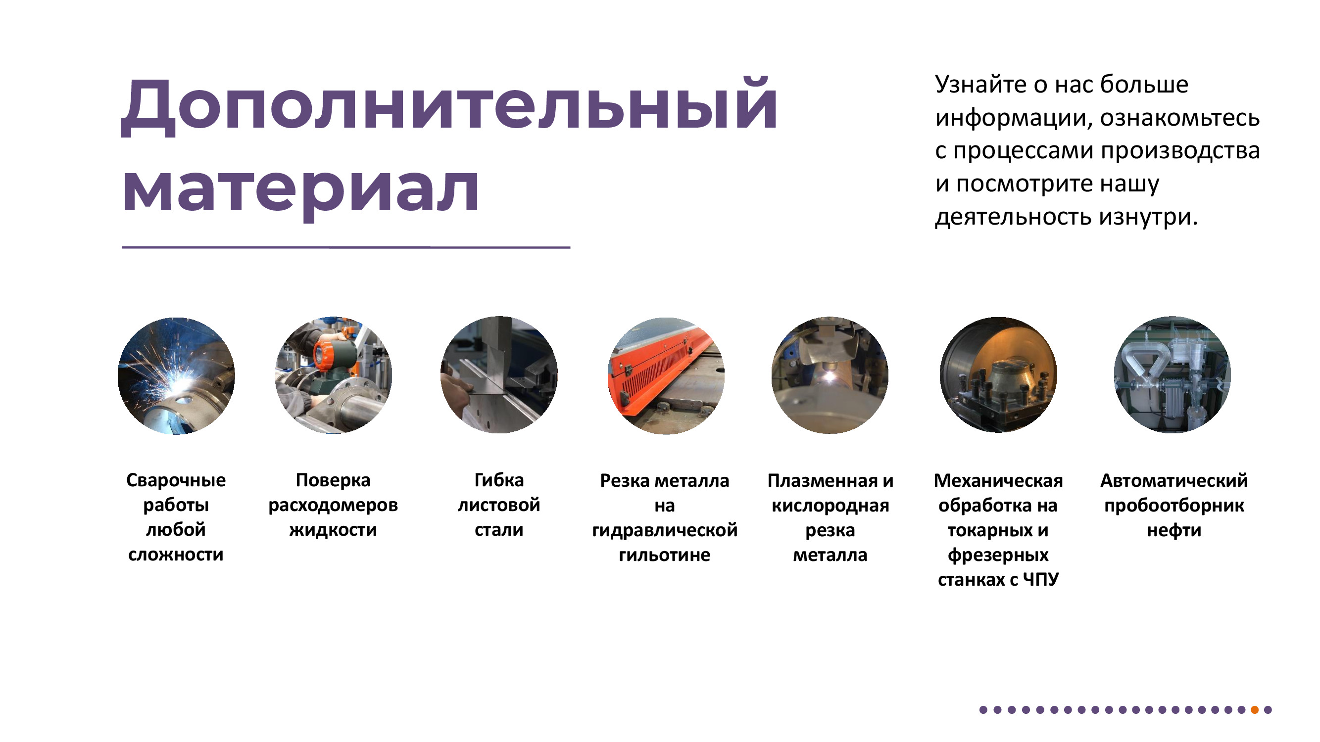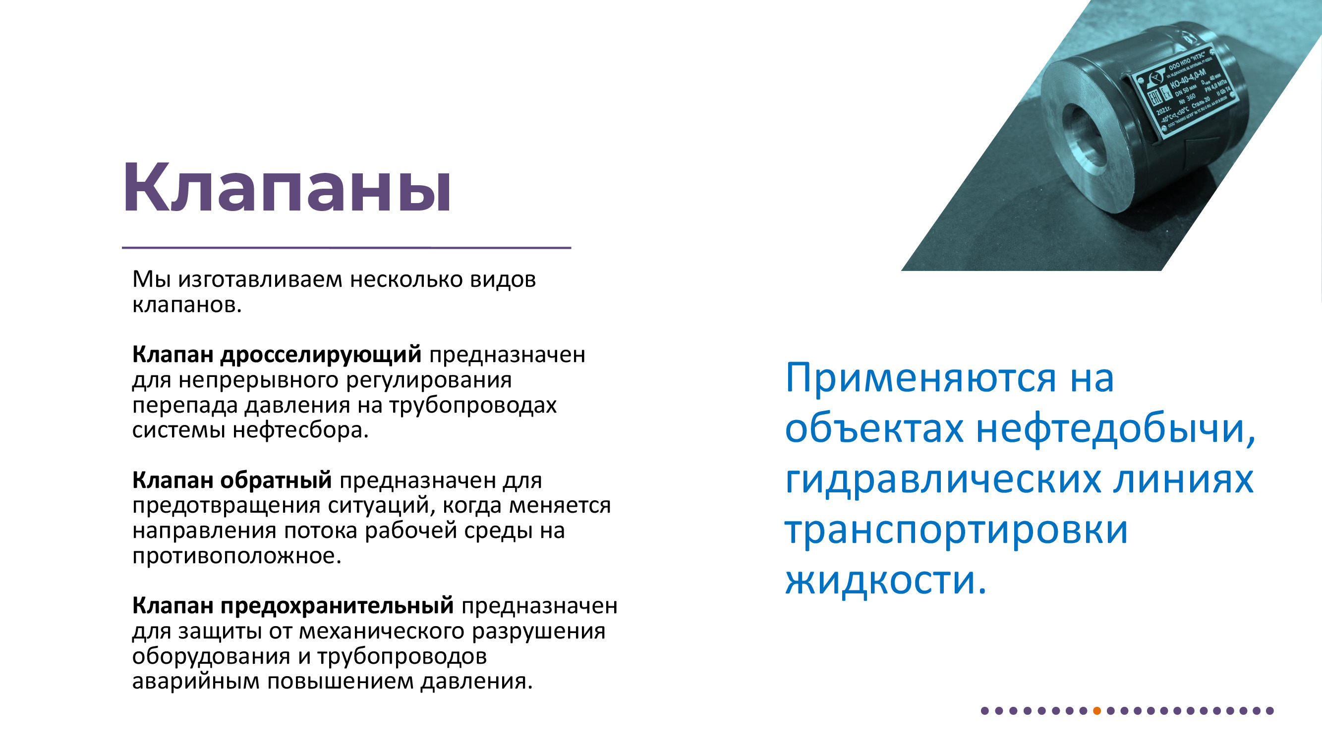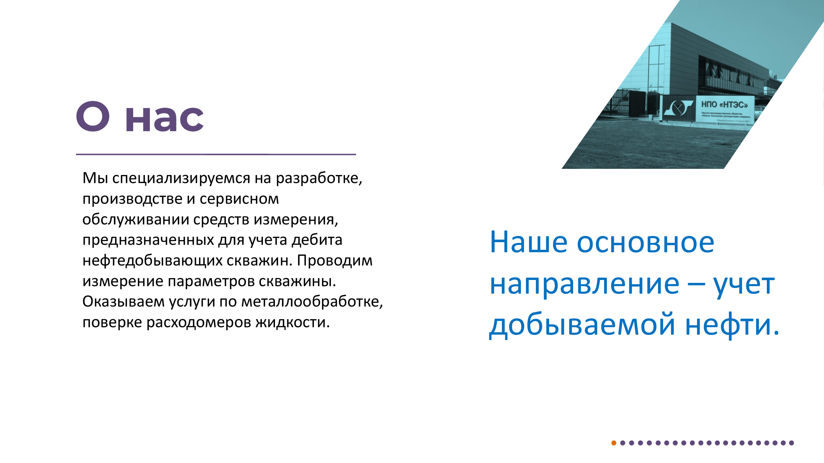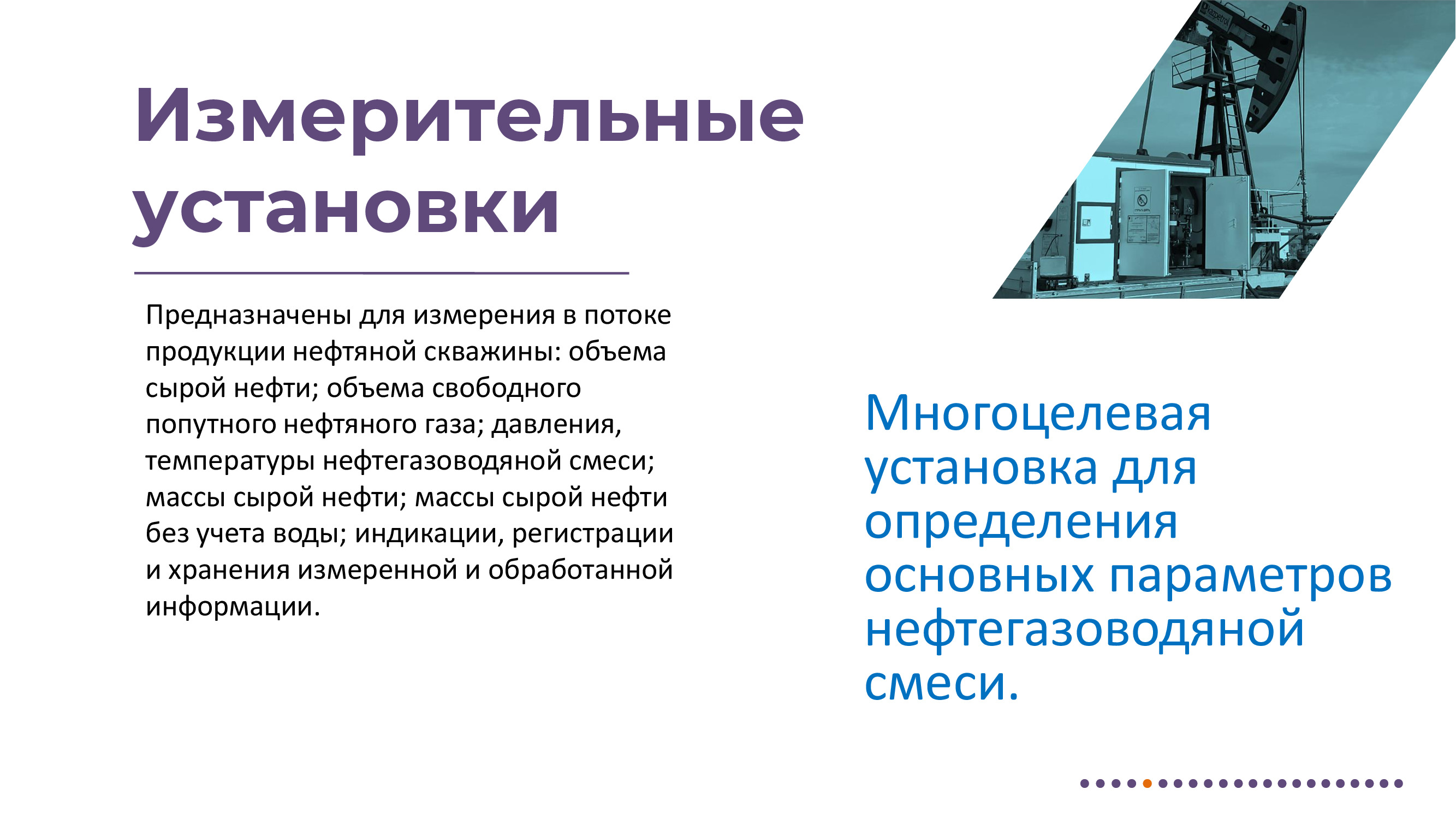 Измерение дебита и других параметров нефтедобывающих скважин. Отбор пробы нефтегазоводяной смеси. Ручные и автоматические пробоотборники для нефтепродуктов. Фильтры. Клапаны. Депульсаторы. Металлообработка. Поверка счетчиков. Мини-погрузчики. Взрывозащищенные электрообогреватели. Терморегуляторы. Сервисное сопровождение всей линейки выпускаемой продукции.