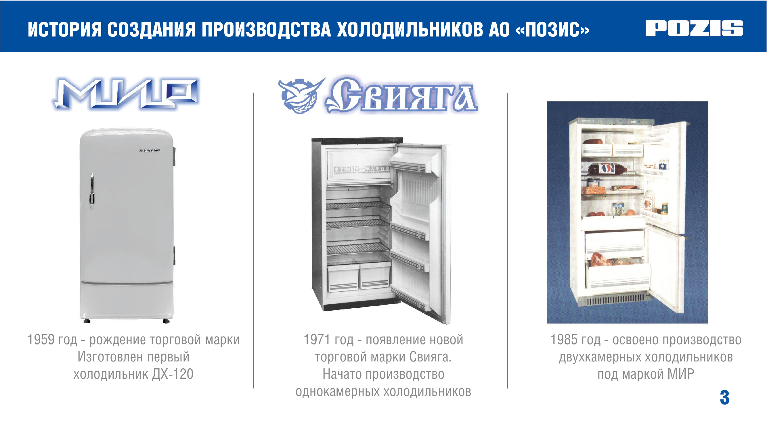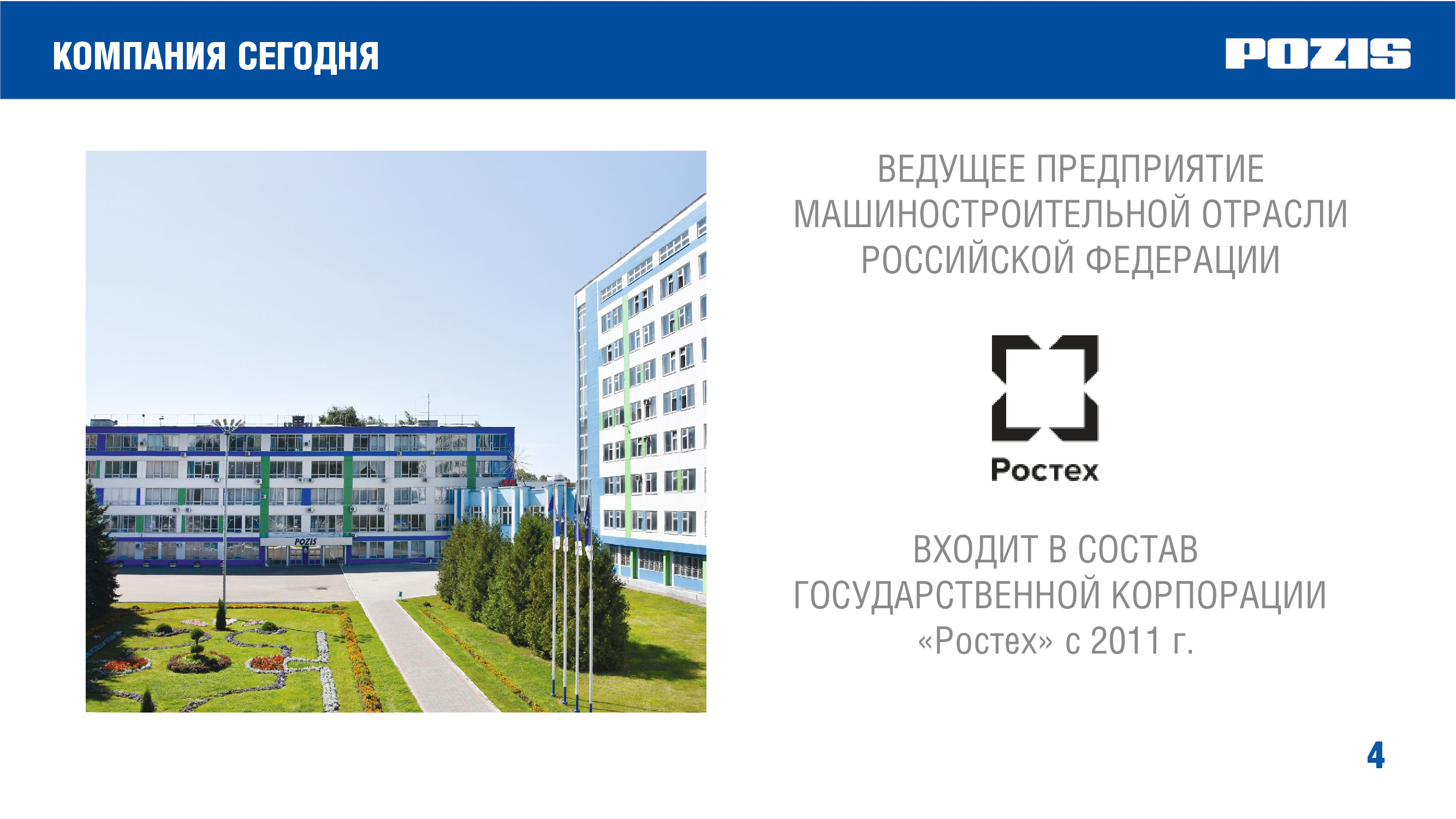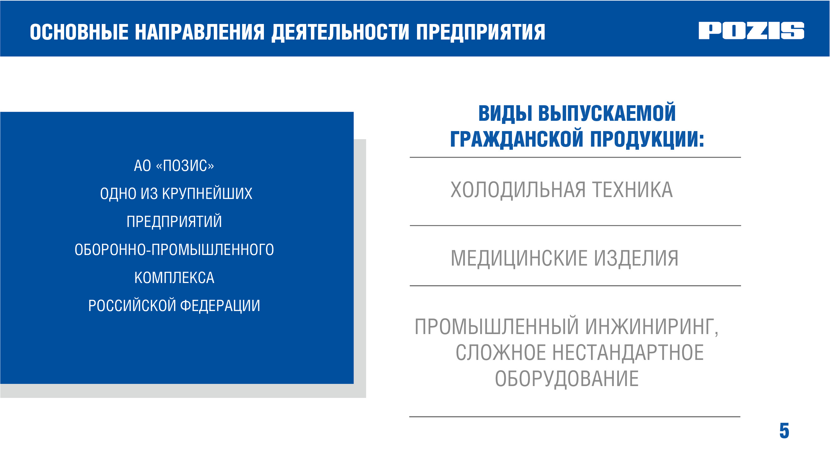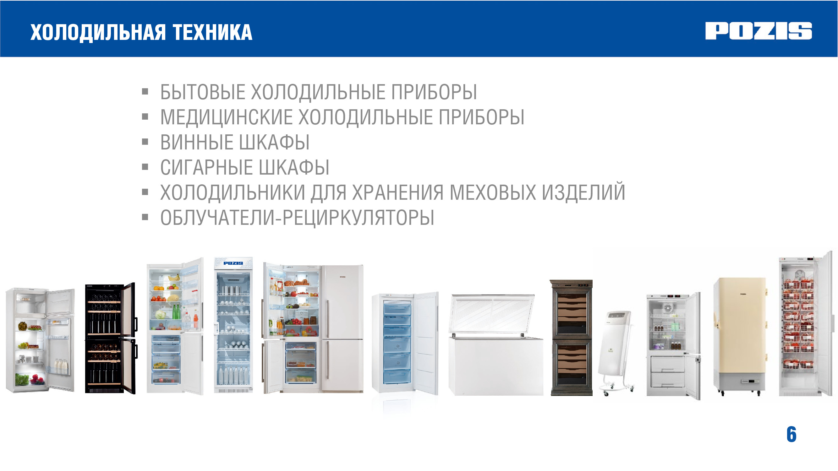 Компания POZIS одно из ведущих предприятий машиностроительной отрасли в составе Государственной корпорации «Ростех». Основана в 1898 году, холодильную продукцию компания начала производить с 1959 года. Предприятие выпускает целую гамму гражданской продукции: бытовую холодильную технику, холодильные шкафы со стеклянной дверью, медицинскую технику и продукцию машиностроительного комплекса. POZIS является первым российским серийным производителем специализированных холодильных шкафов для хранения вина. Предмет особой гордости компании – уникальная линейка холодильного оборудования, украшенного художественной росписью и инкрустацией оригинальными кристаллами Swarovski. Кроме выпуска основной продукции, POZIS оказывает услуги по проектированию и изготовлению сложного технологического оборудования, автоматических комплексов и испытательных стендов, нестандартного инструмента и оснастки.