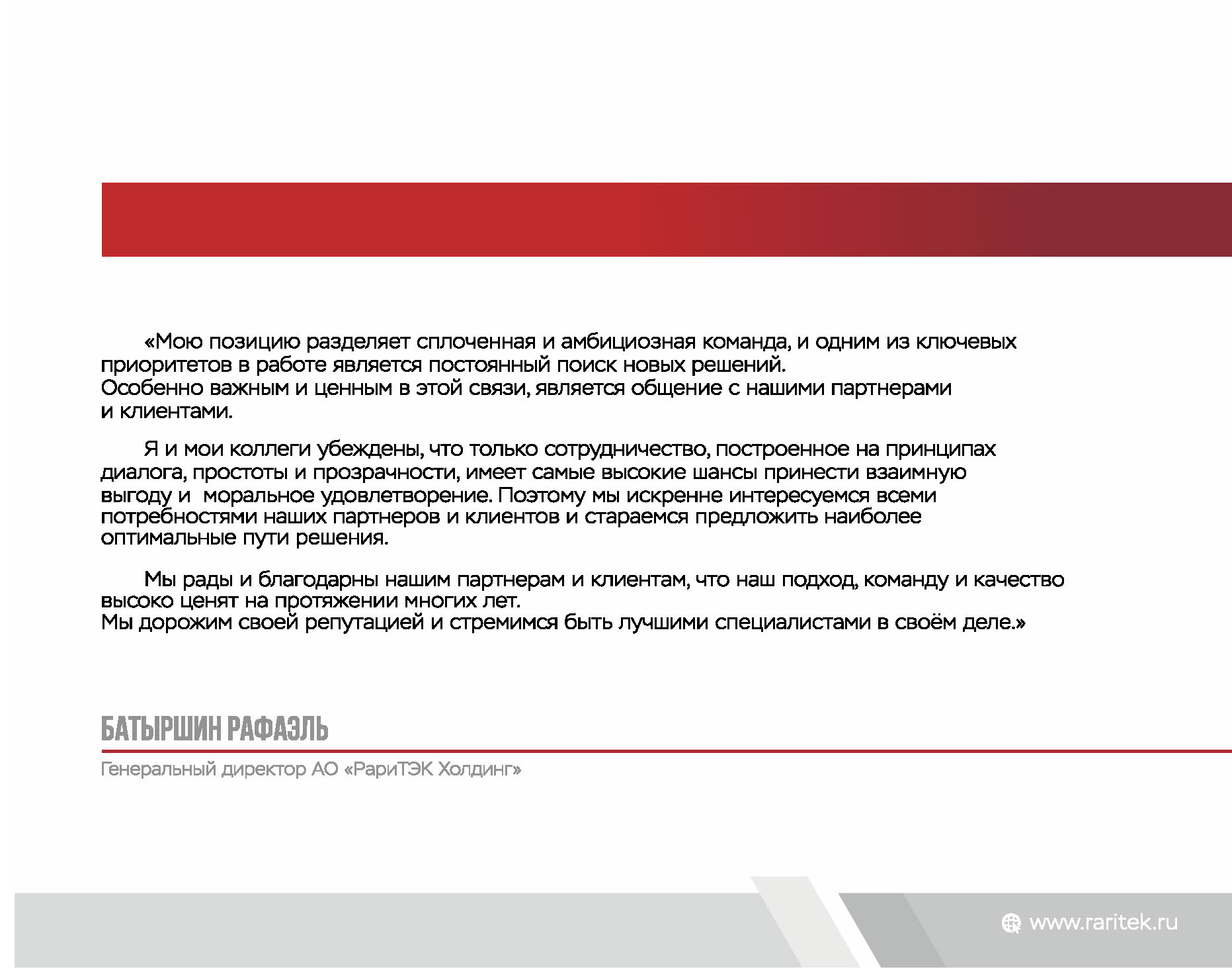АО «РариТЭК Холдинг» - торгово-промышленное объединение. Деятельность компании основана на комплексном подходе по внедрению газомоторной техники, которая включает: производство и реализацию автотехники на природном газе на КПГ и СПГ, запасных частей, обучение лиц эксплуатирующих автомобили с газобаллонным оборудованием, сервисное обслуживание, создание и развитие газозаправочной инфраструктуры, а также переоборудование существующего парка техники. Компания с 2010 года имеет статус официального дистрибьютора, а с 2017 года статус дилера ПАО «КАМАЗ» по продукции с газовыми двигателями на территории Российской Федерации. Является членом НП «Национальная газомоторная ассоциация».