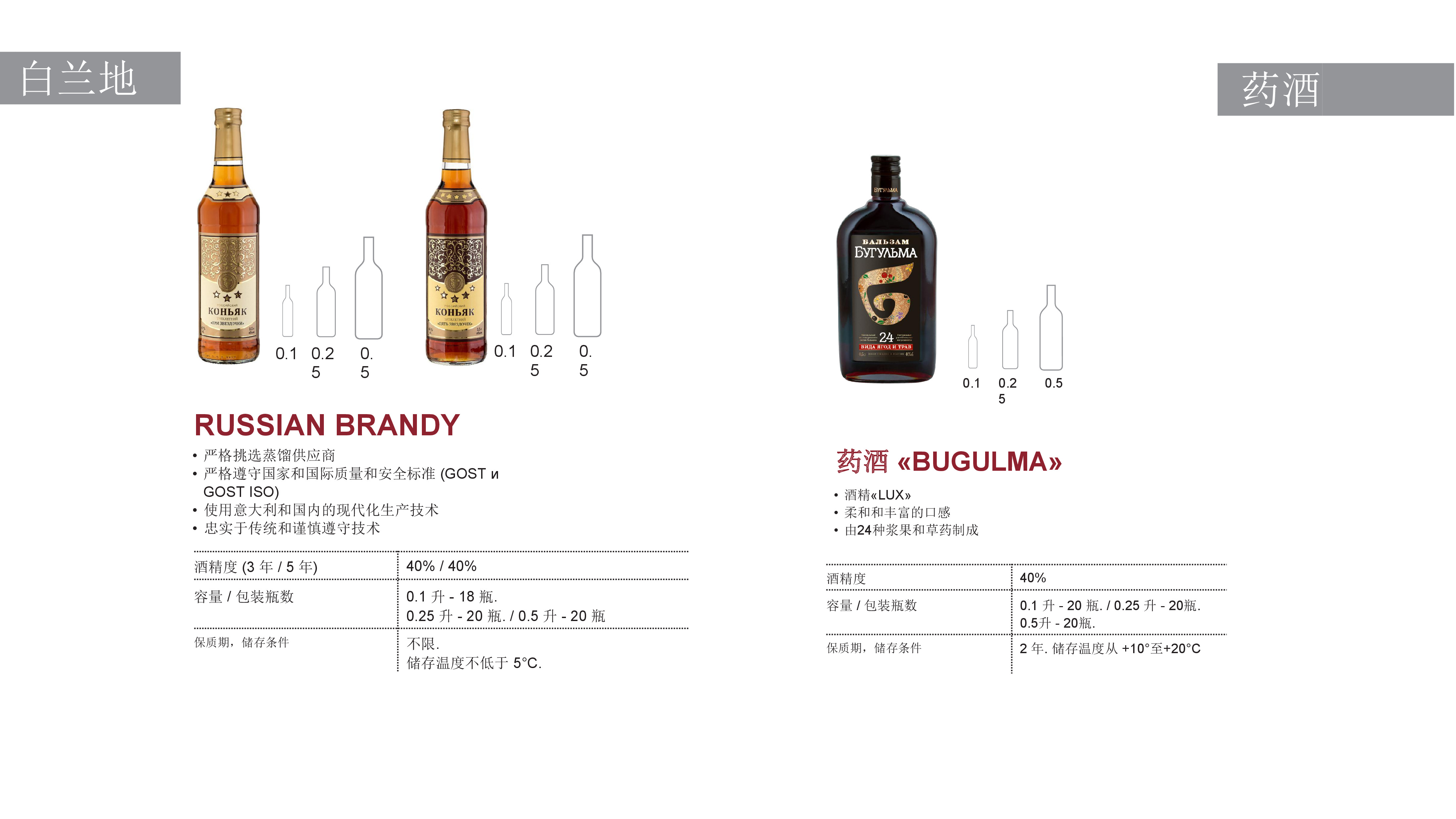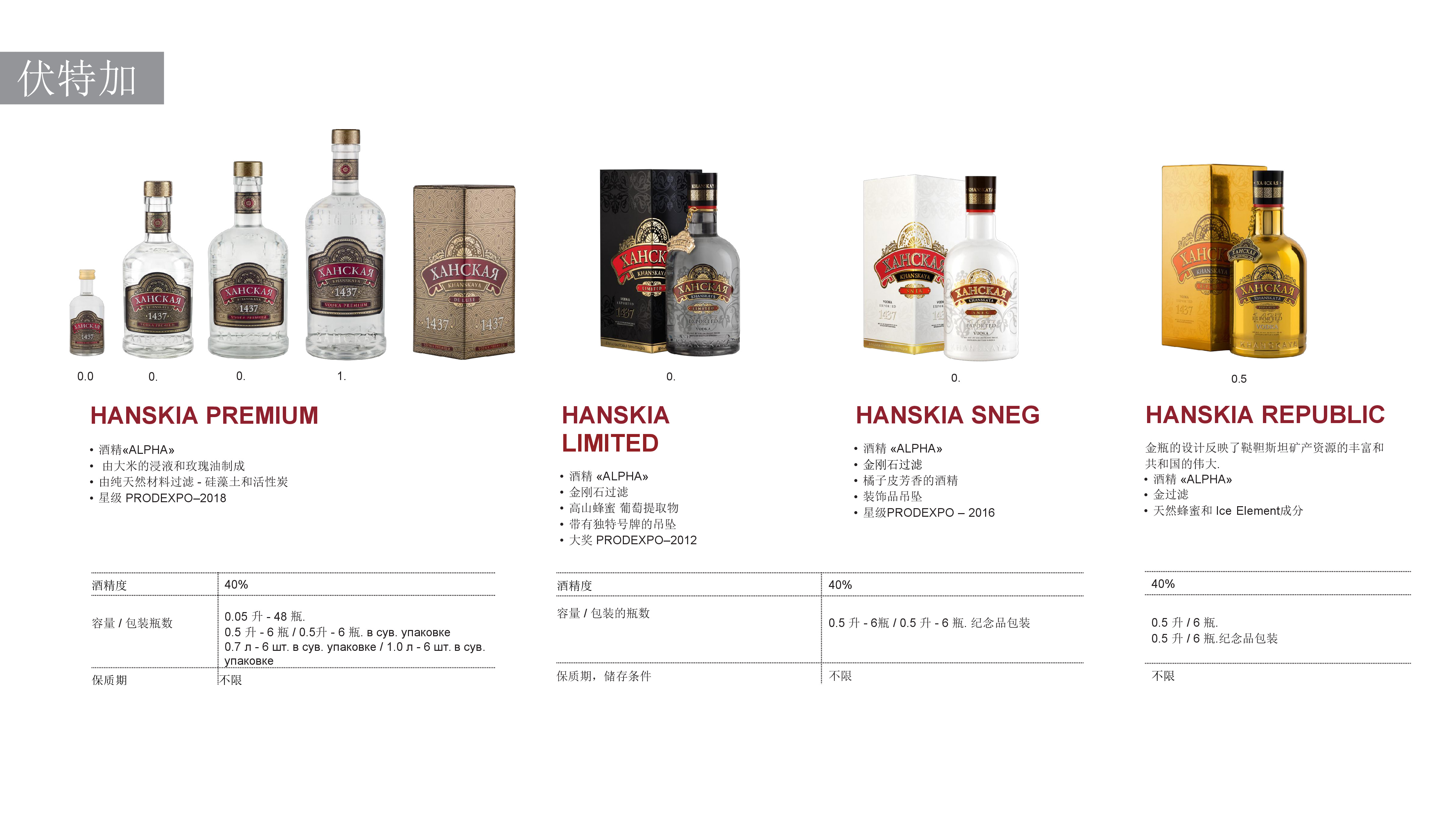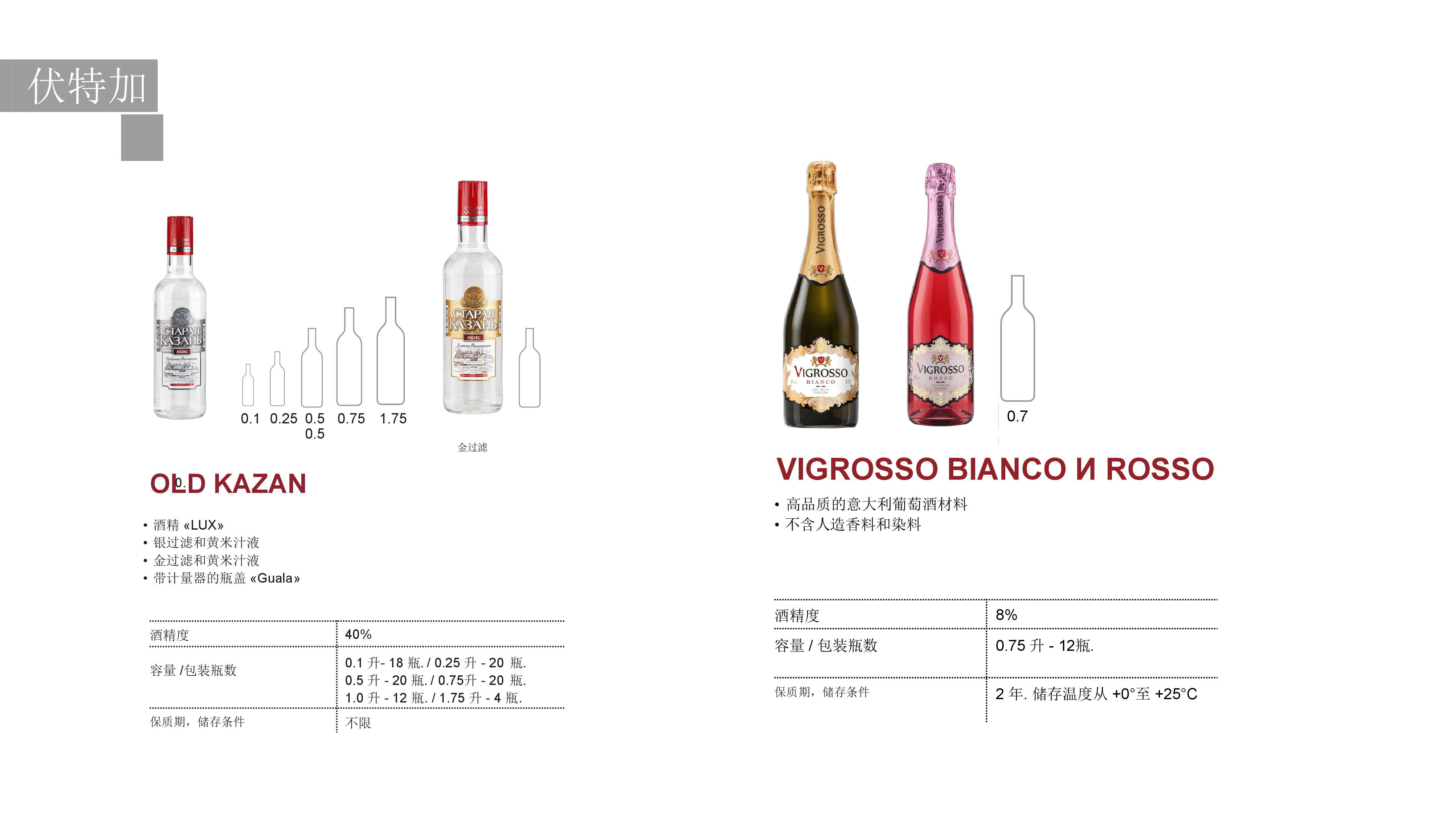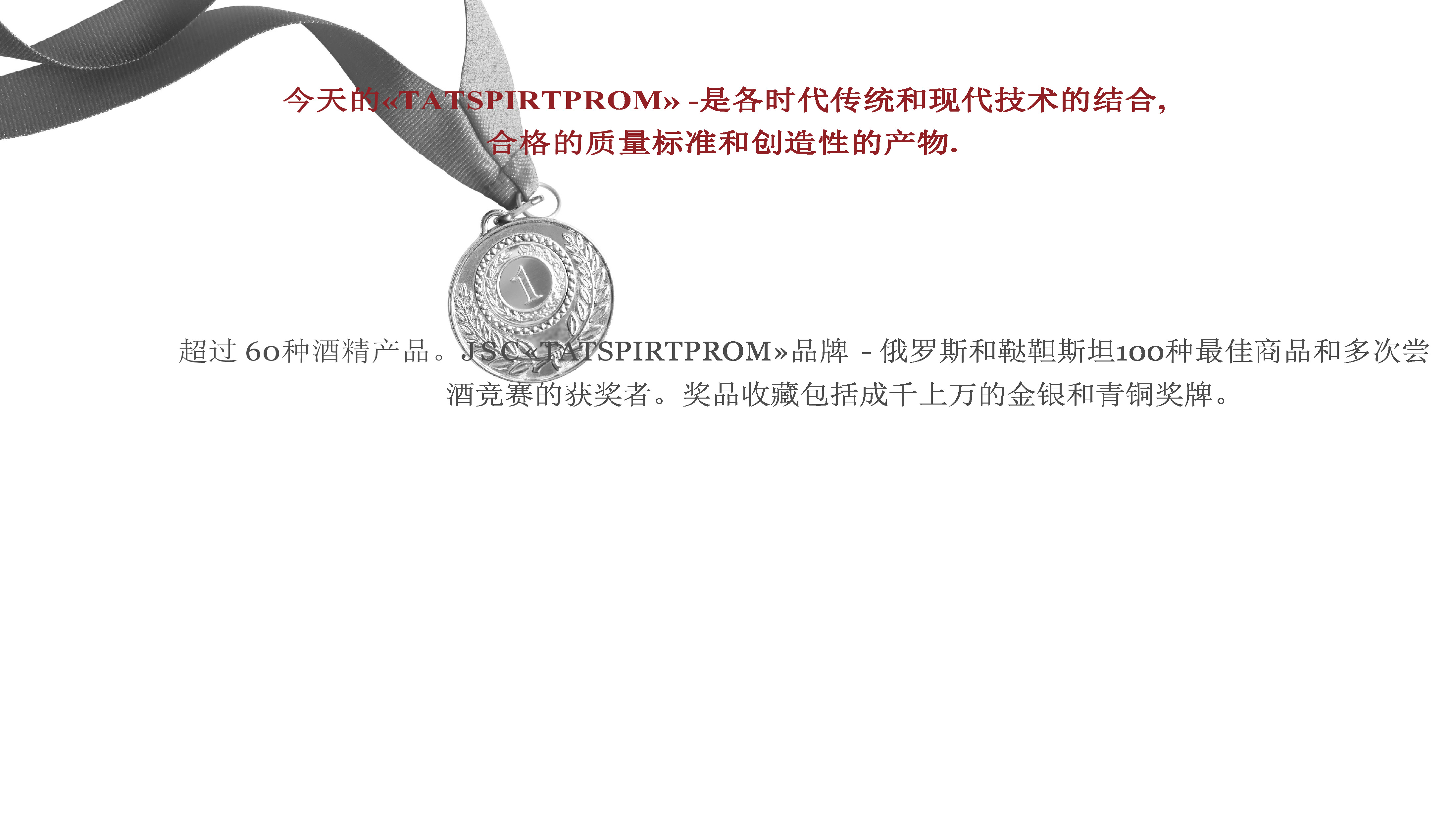 OAO(Russia) Tatspirtprom拥有两座酒厂,四座甜烧酒厂和一座葡萄酒厂。主要品牌有“大汗限量版”,“Akdov”,“Graf Ledoff”,“Tundra”,“俄罗斯礼炮”系列伏特加,Your Choice威士忌, Vento de Campo开胃酒和Lindele香槟。Tatspirtprom旗下拥有精品零售连锁店Arysh Mae。该连锁店于2016年初将其在鞑靼斯坦的市场份额提高了2倍,占11.3%。 这是1007家商店和贸易点,其中也包括特许经营店。公司的产品在2016年出现在了俄罗斯全部85个联邦主体的贸易和零售网点中。