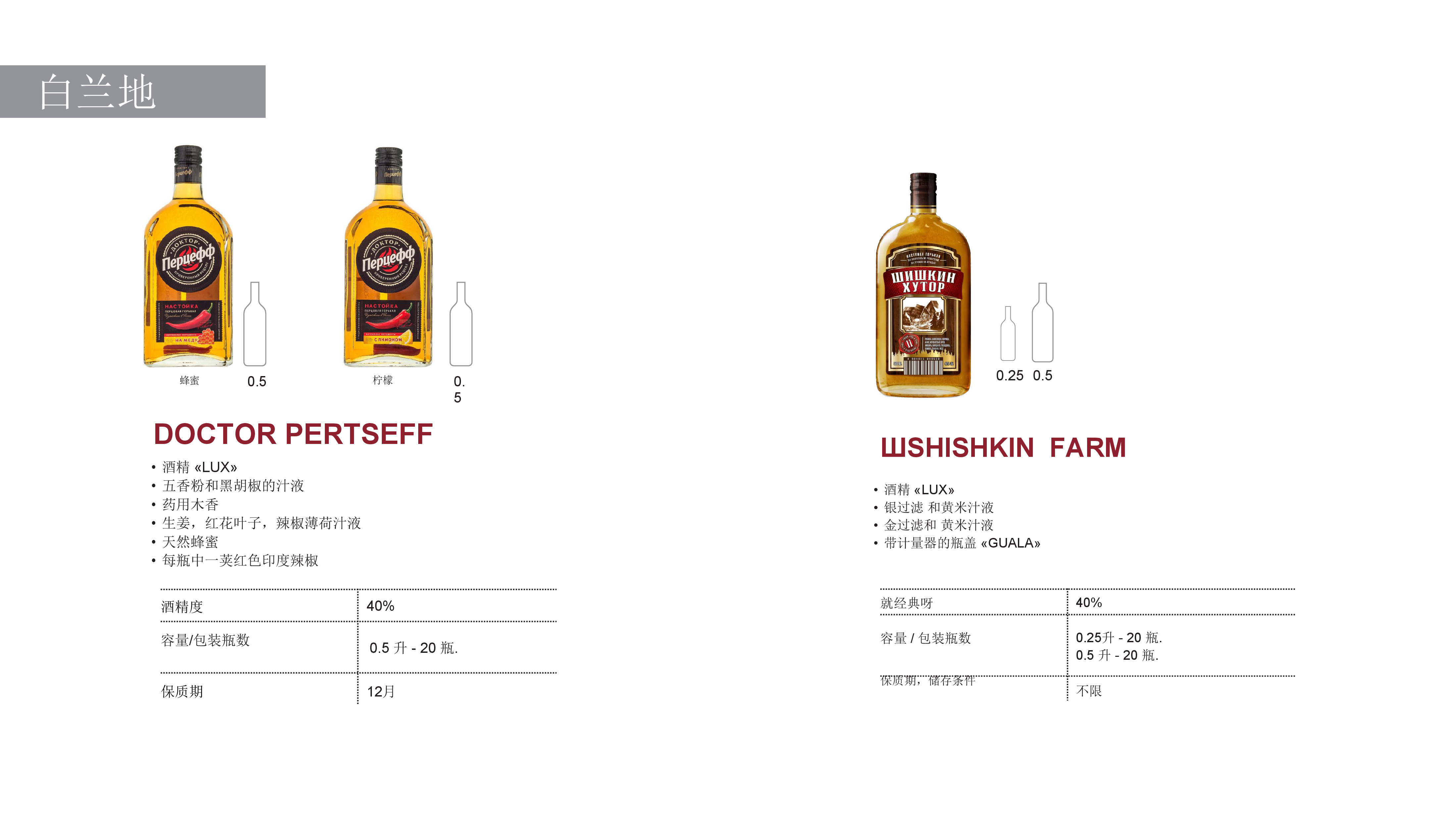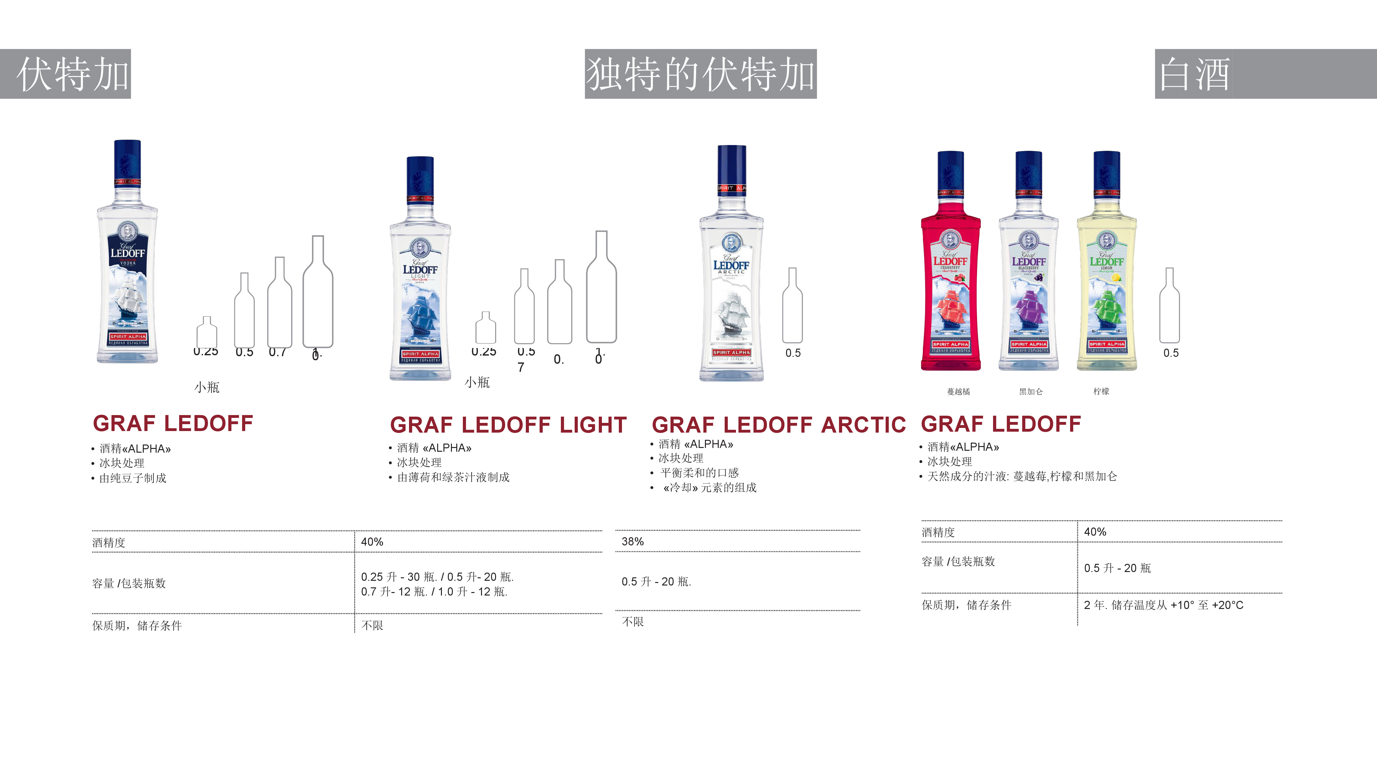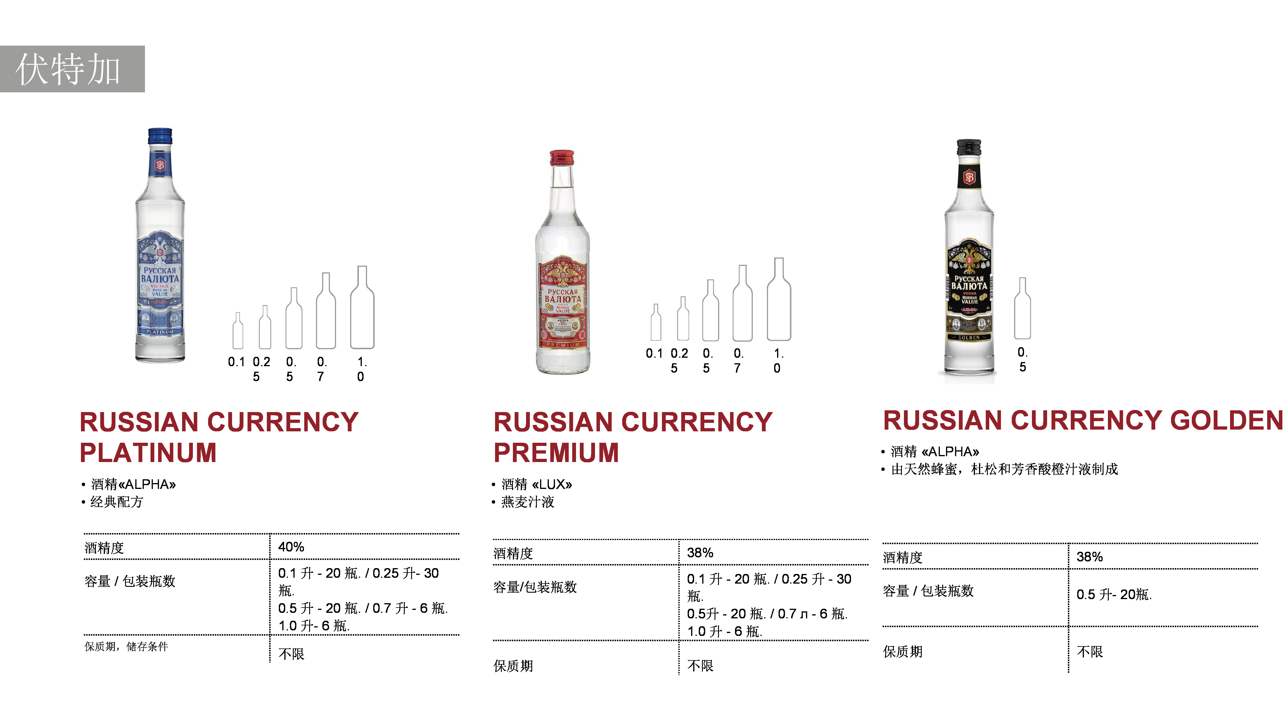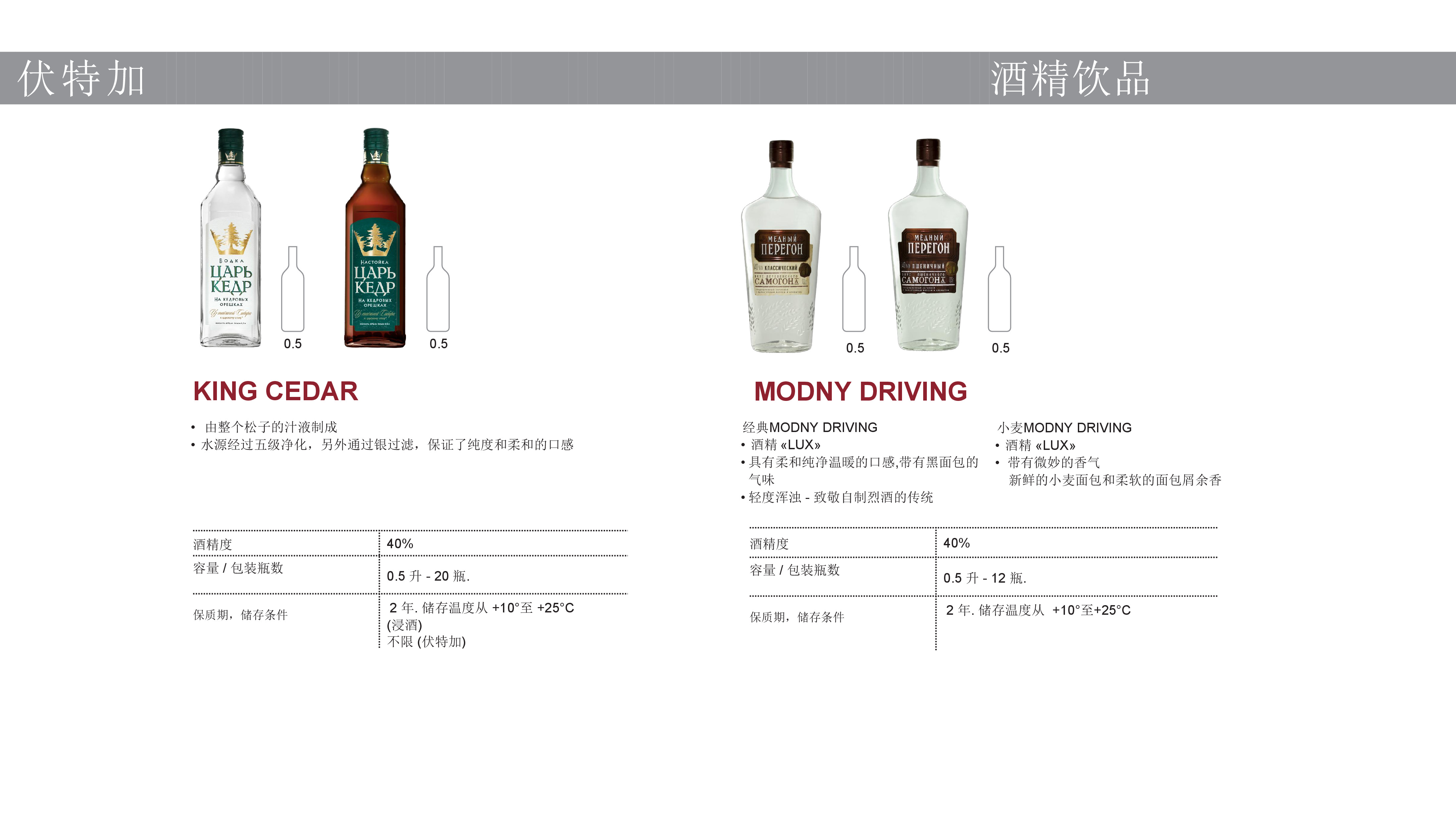 OAO(Russia) Tatspirtprom拥有两座酒厂,四座甜烧酒厂和一座葡萄酒厂。主要品牌有“大汗限量版”,“Akdov”,“Graf Ledoff”,“Tundra”,“俄罗斯礼炮”系列伏特加,Your Choice威士忌, Vento de Campo开胃酒和Lindele香槟。Tatspirtprom旗下拥有精品零售连锁店Arysh Mae。该连锁店于2016年初将其在鞑靼斯坦的市场份额提高了2倍,占11.3%。 这是1007家商店和贸易点,其中也包括特许经营店。公司的产品在2016年出现在了俄罗斯全部85个联邦主体的贸易和零售网点中。