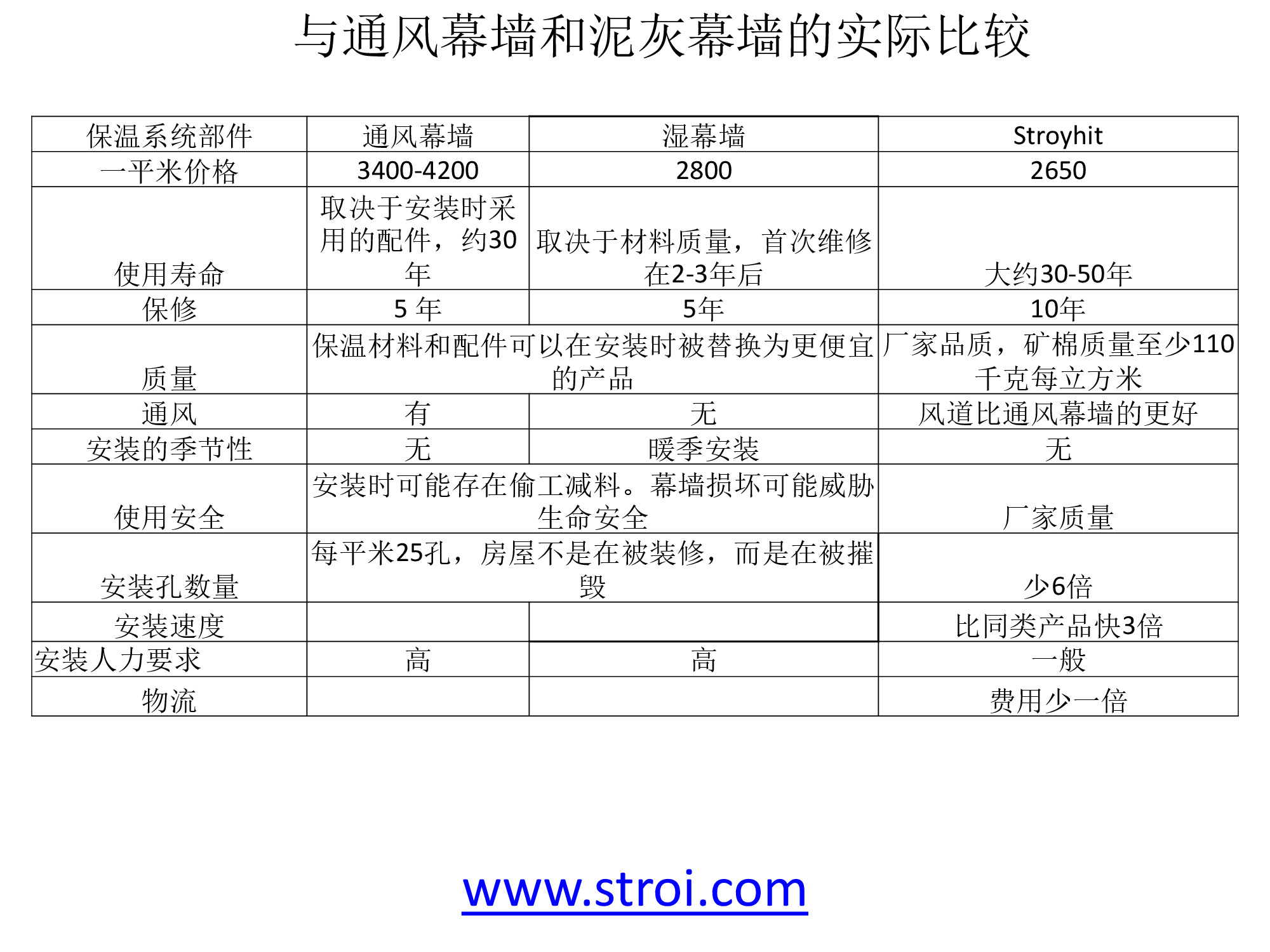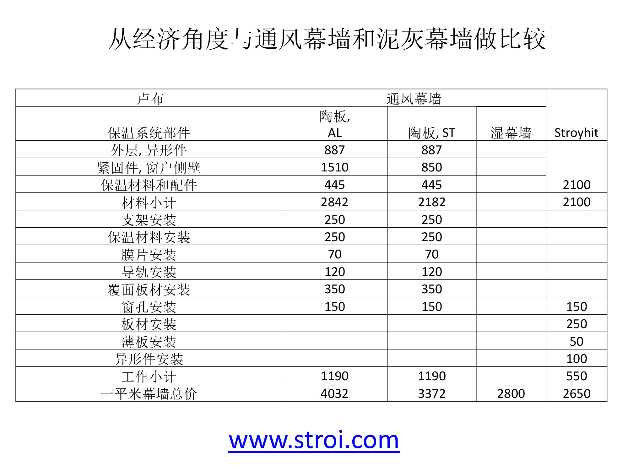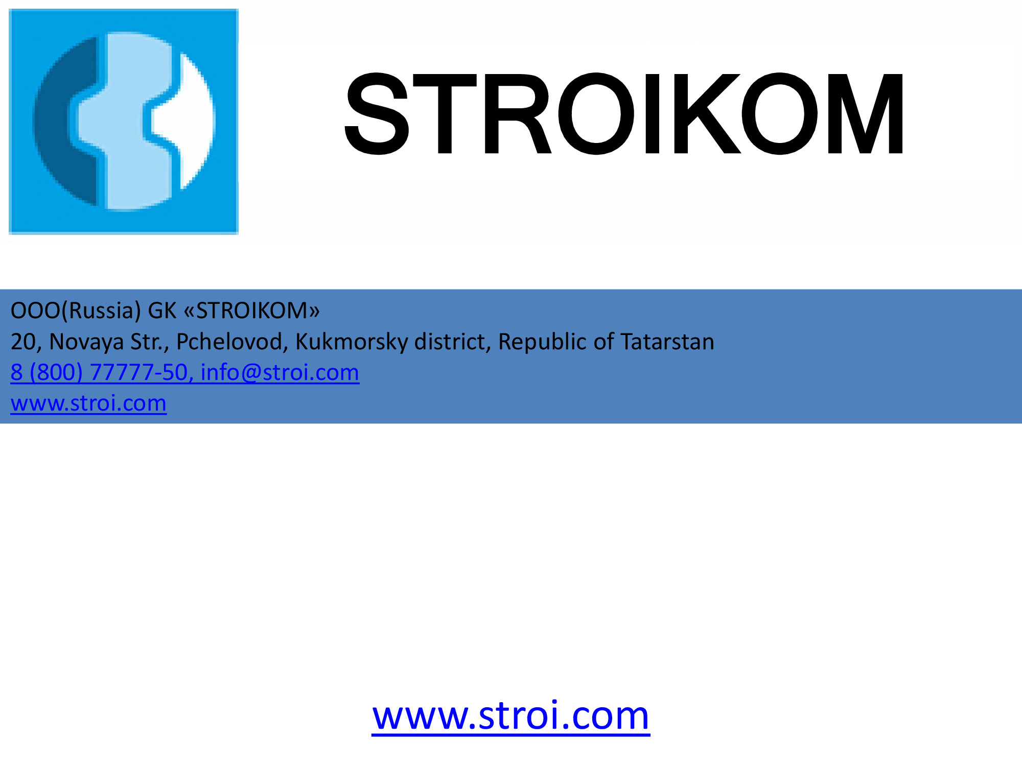 OOO(Russia) Stroicom制造3层夹芯屋顶板和墙板。产品安装参数:50至250毫米(厚度),1000至1200毫米(长度),1200毫米(宽度)。2014年引进了新的生产线,墙板产品长度1000至1190毫米,屋顶板宽度1000毫米,带5道梯形波纹。如今Stroicom生产保温板,其形式为发泡聚苯乙烯(泡沫板),还制造绝热阻燃块,其材料为玄武岩矿棉。